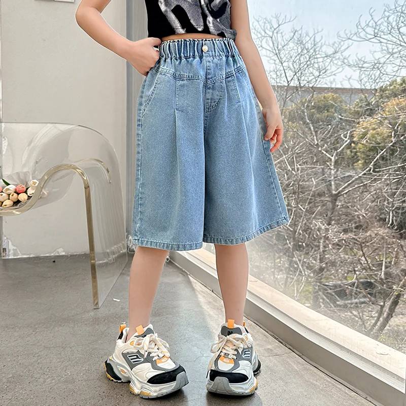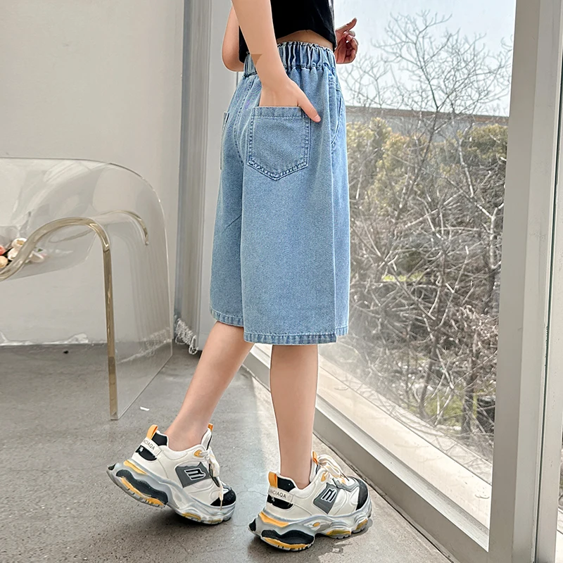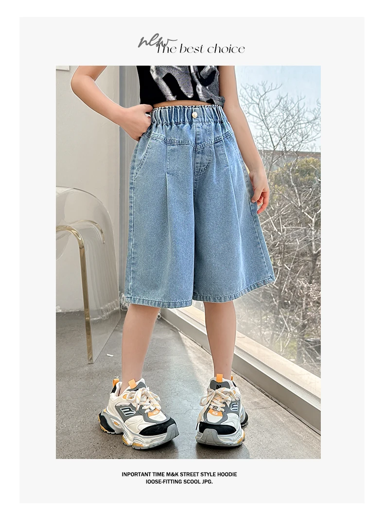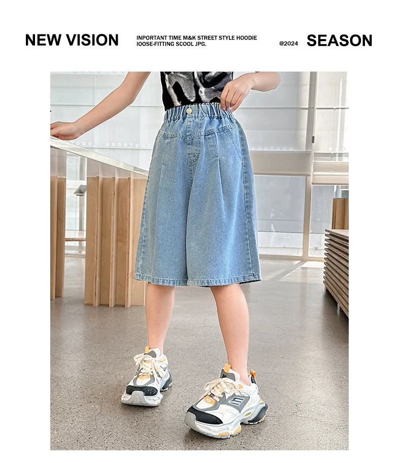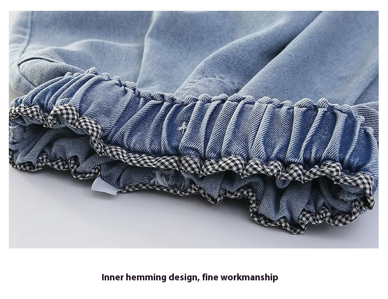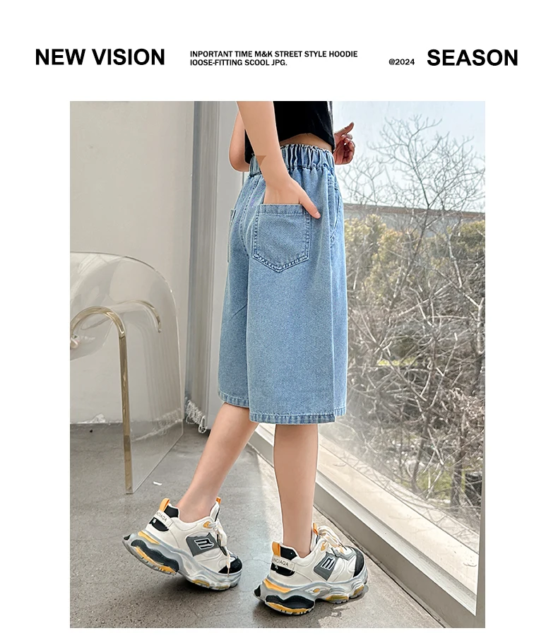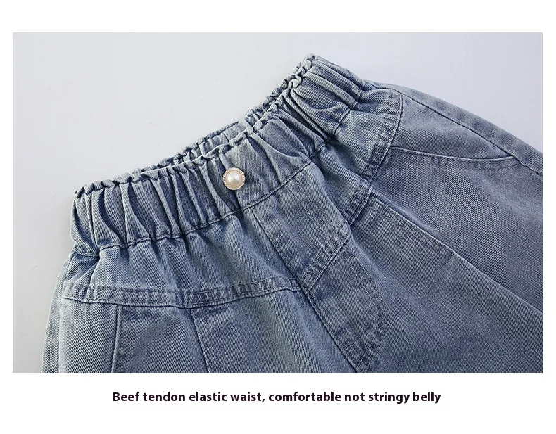 Girls’ sequin denim shorts, stylish and versatile, for children aged 5-15, with a three-dimensional wrinkled effect to them look
