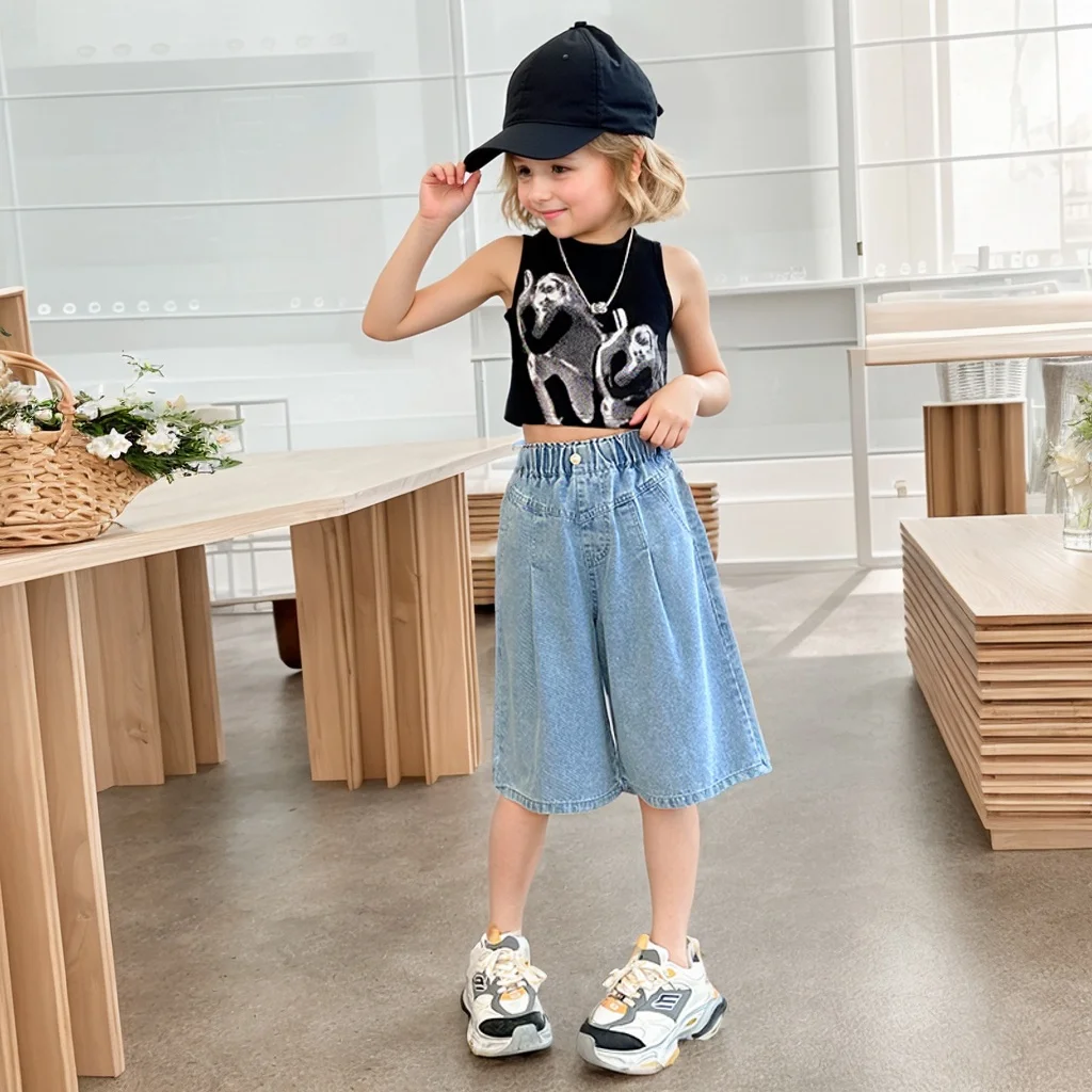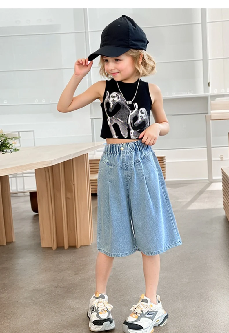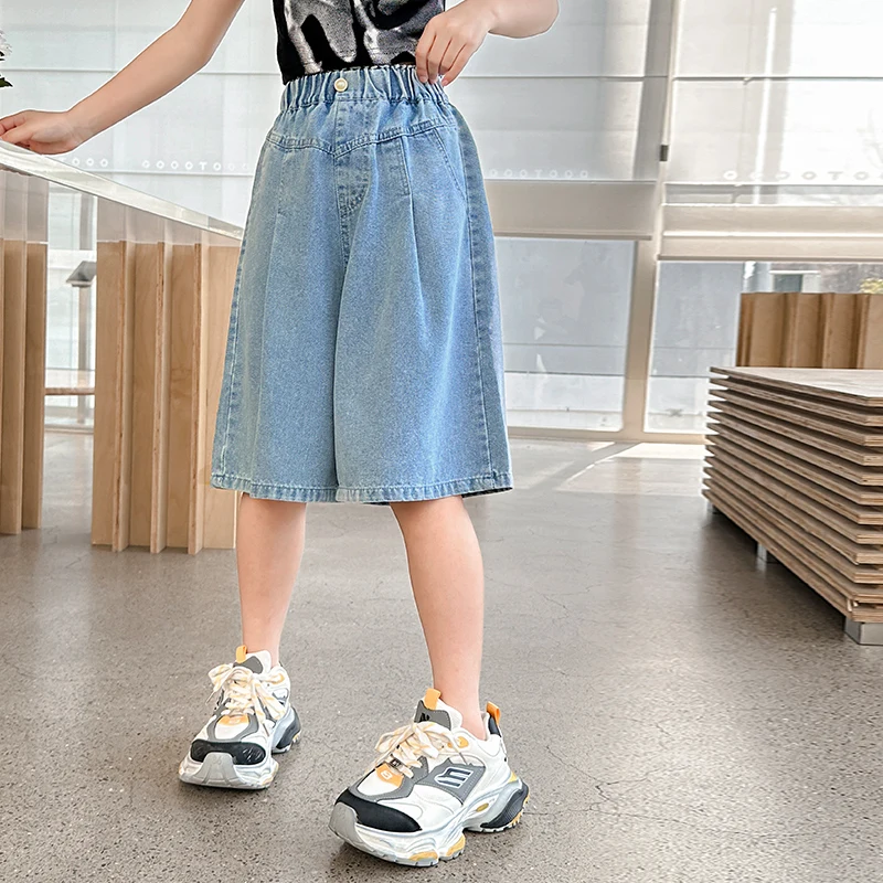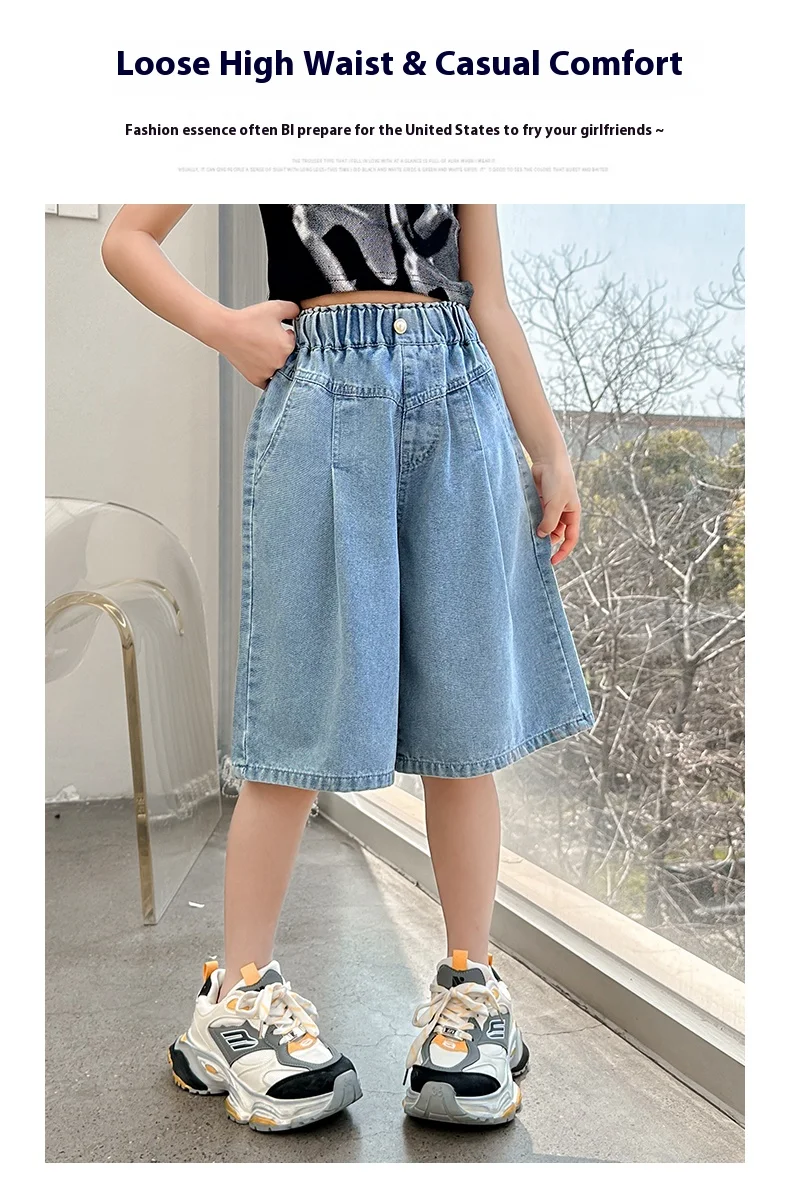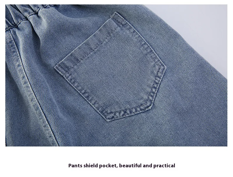 Girls’ sequin denim shorts, stylish and versatile, for children aged 5-15, with a three-dimensional wrinkled effect to them look