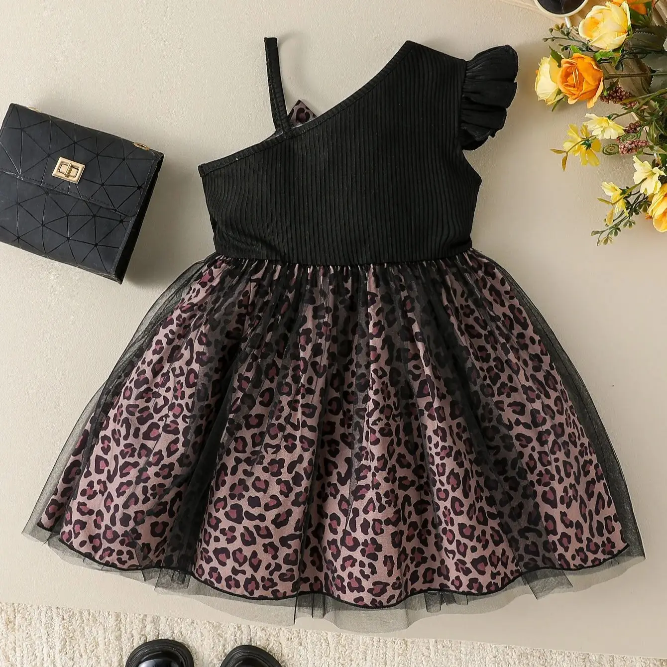 Girls’ Summer Fashion Dress: Off-Shoulder Bow with Lace-Trimmed Skirt