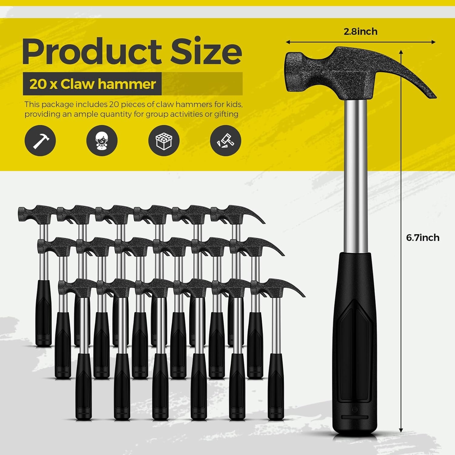Sufficient Package in Small Size: this package includes 20 pieces of claw hammers for kids, providing an ample quantity for group activities or gifting; The hammers are compact, measuring about 6.7 x 2.8 inches, 70g in weight, making them easy for kids to handle and use; Compact and portable, it can easily fit into a bag or pocket, and the small size allows precise and controlled hammering in tight spaces