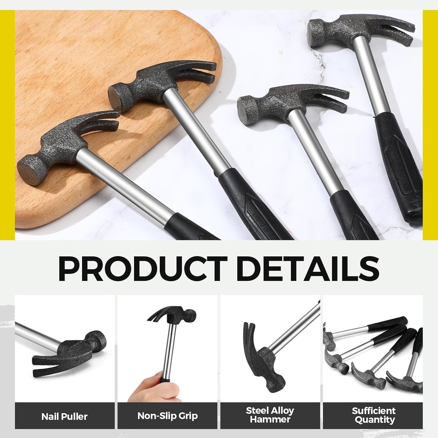 Quality and Sturdy Material: crafted from sturdy alloy steel and rubber material, the small hammer is built to withstand regular use and provide long lasting performance; The metal part of the hammer is specially treated to resist rust and be strong, and the claw hammer ensures durability; The sturdy construction ensures that they can handle various tasks while maintaining their structural integrity