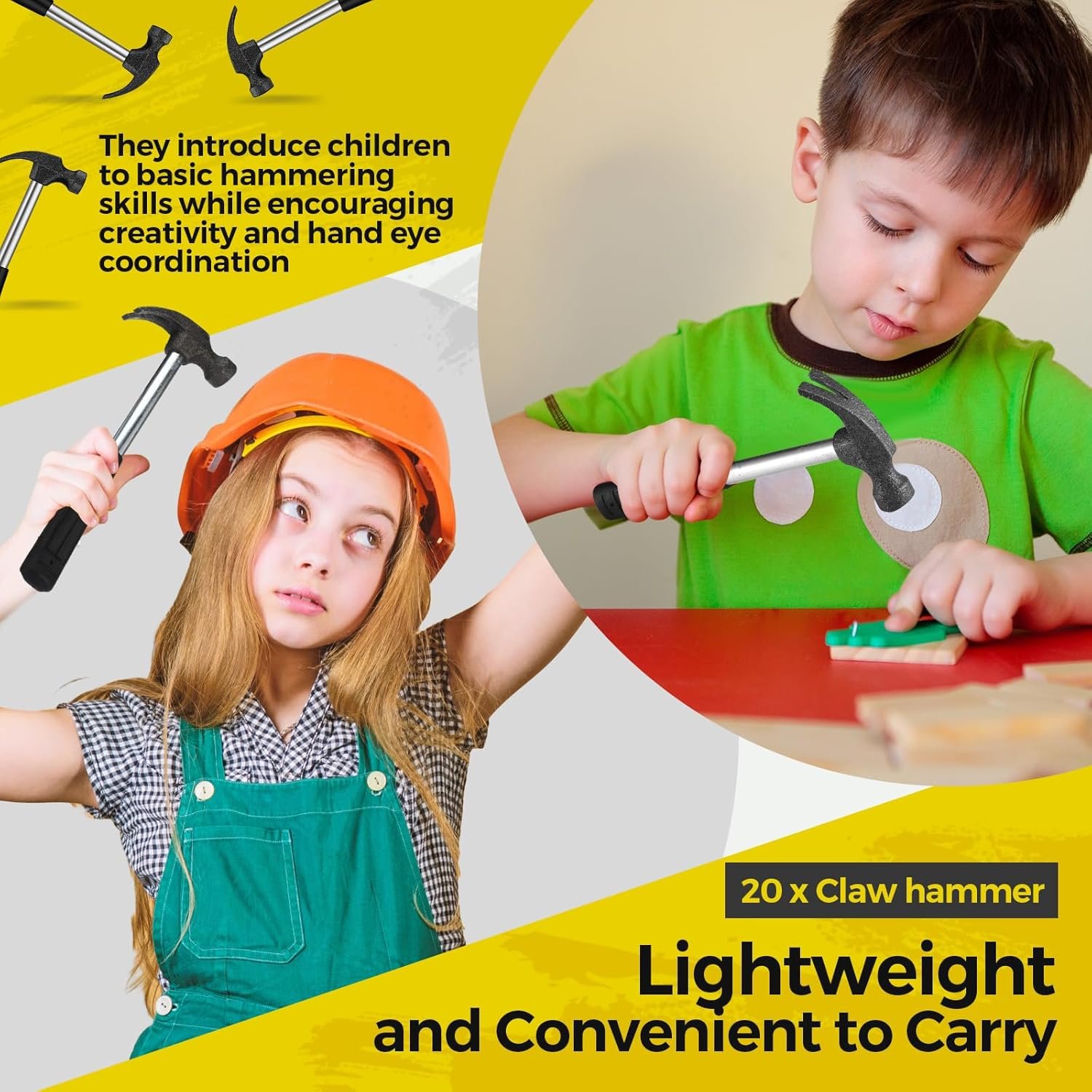 Easy to Use: designed with simplicity in mind, the hammer tool is easy for kids to use, suitable for one hand work; The lightweight construction and balanced design allow for precise control and accuracy, making them ideal for young beginners; The chisel end of a small claw hammer can score in bricks, blocks or stones, providing strong striking force and nice cutting effect
