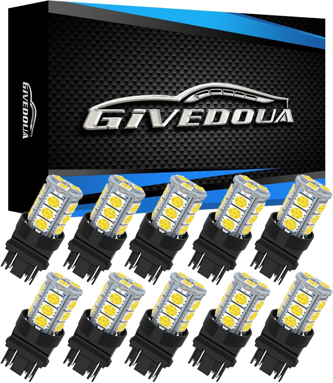 GIVEDOUA 3157 LED Car Bulb Super Bright 12V 3056 3156 3156A 3057 4057 3157 4157 T25 LED Car Bulbs for Brake Lights, Backup Reverse Lights,Pack of 10pcs