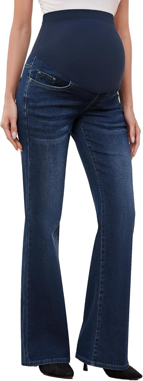 GLAMIX Women’s Stretch Maternity Bootcut Jeans with Pockets Over The Belly Bell Bottoms Flare Denim Pants Pregnancy Clothes