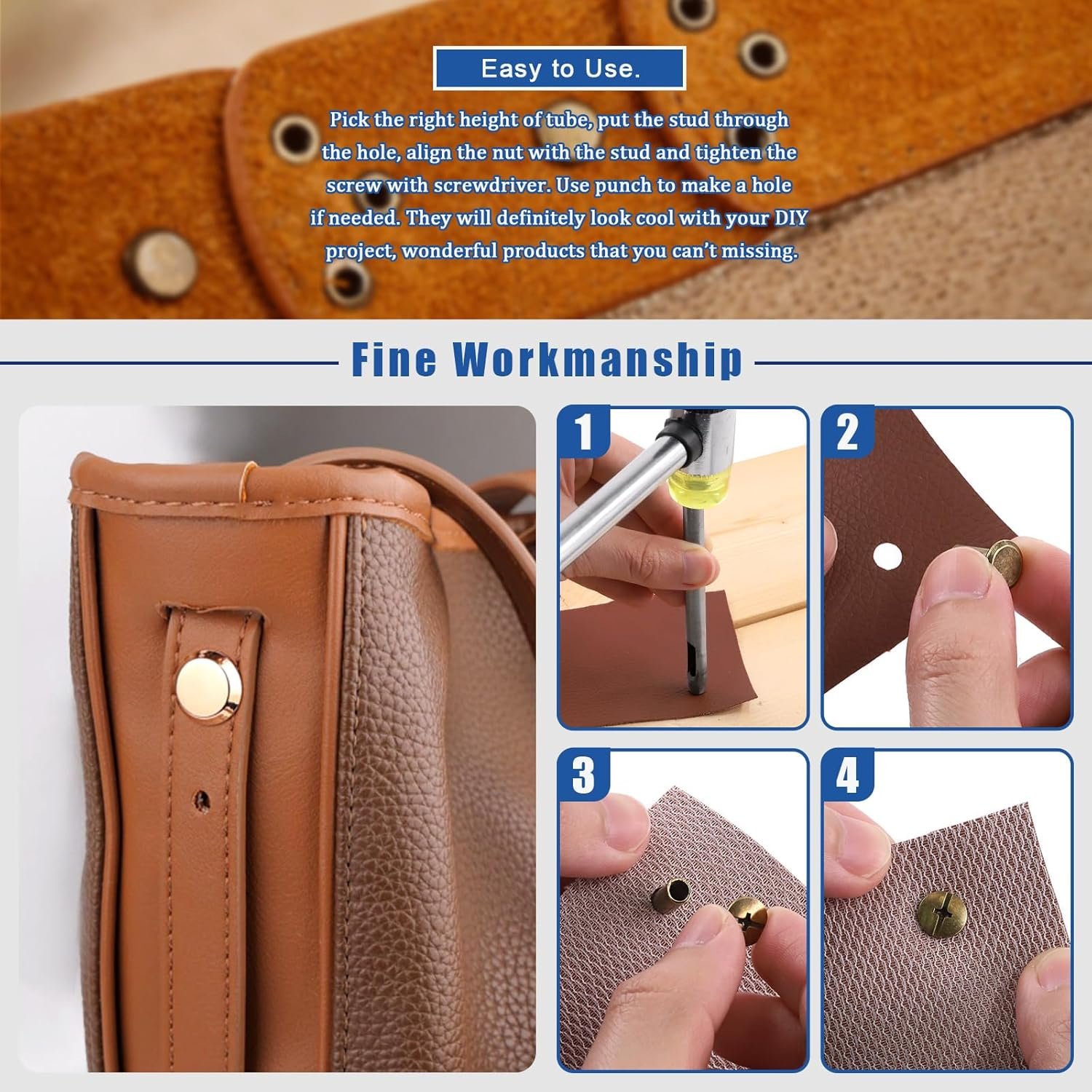 ▲ Product Type: Chicago Screws Leather Rivets with Punch and Screwdriver Kit