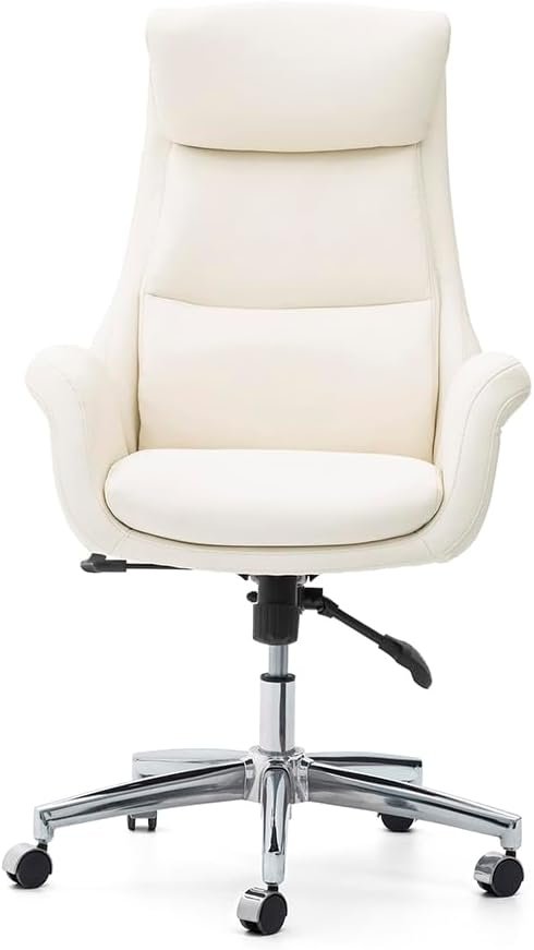 Customers find the office chair comfortable with its firm seat cushion and appreciate its appearance, with one noting its mid-century vibe. The chair is adjustable in both height and recline, and customers find it easy to assemble. The build quality and value for money receive mixed reviews – while some find it well-made and worth the price, others report durability issues with the leather and consider it cheaply made. The lumbar support and armrest placement are mixed aspects, with some praising the lower back support while others find it inadequate, and several customers note the armrests are too low and the chair sits too high off the ground.