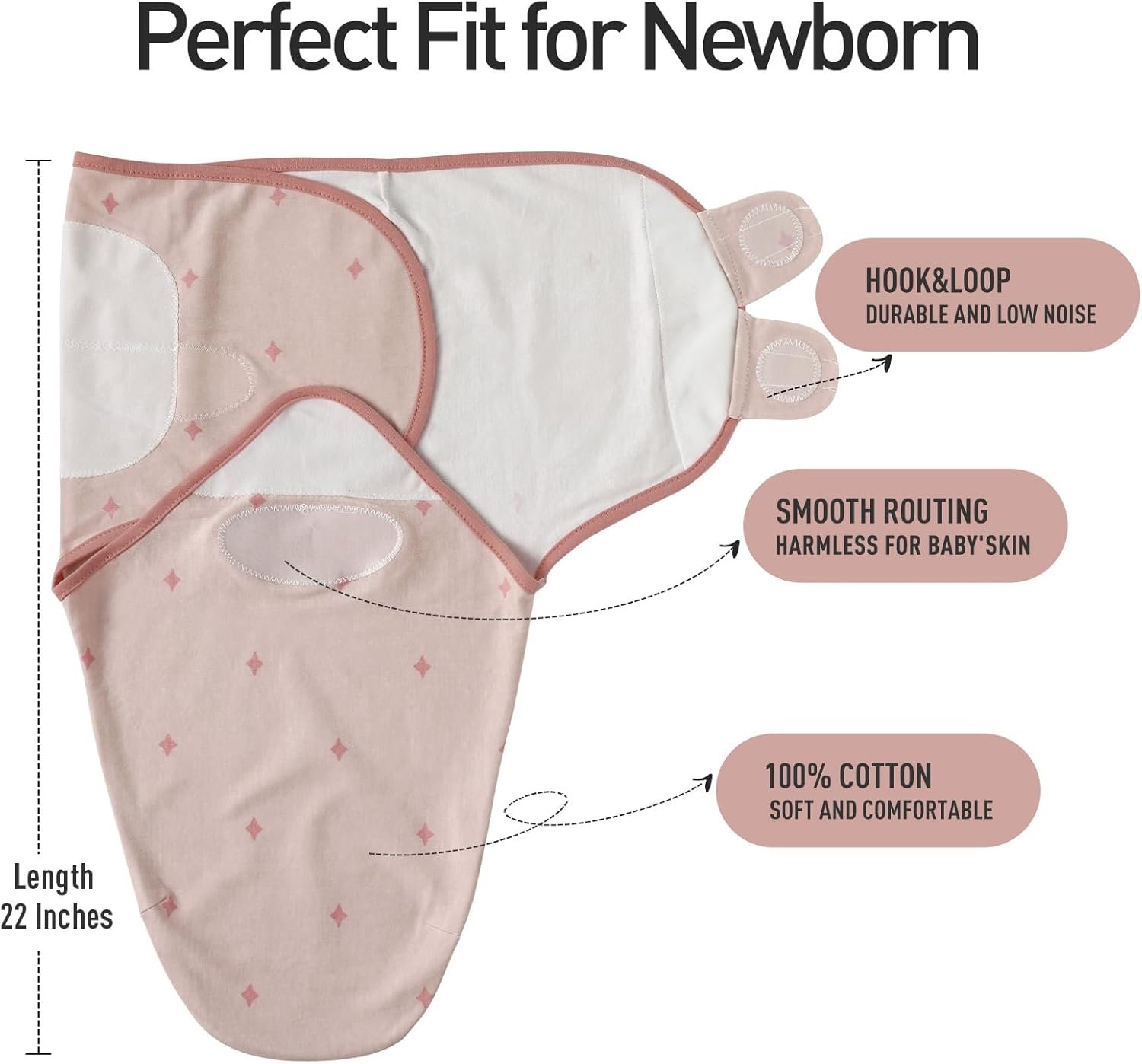 ADJUSTABLE: Swaddling your baby snugly becomes easy with our adjustable fabric wings that fasten securely with hook and loop to create the perfect fit. You can adjust the tightness of the baby swaddle wrap with your baby’s growth