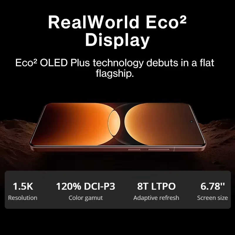 Display—————–6.78inch 120Hz Four-sided Curved Display, 6500nit Peak Brightness, RealWorld Eco² Display