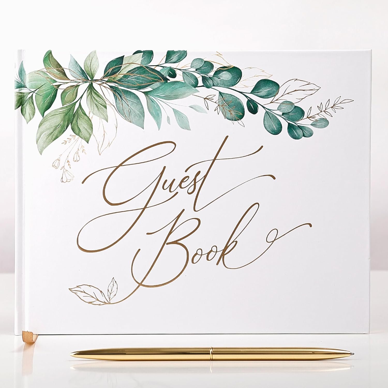 Gold Foil Greenery Wedding Guest Book 7 x 9 inches, Pen & Table Sign Included, Resgistry Sign in Book for Wedding, Bridal Shower, Baby Shower, Graduation, Birthday, Funeral, Anniversary or Reception