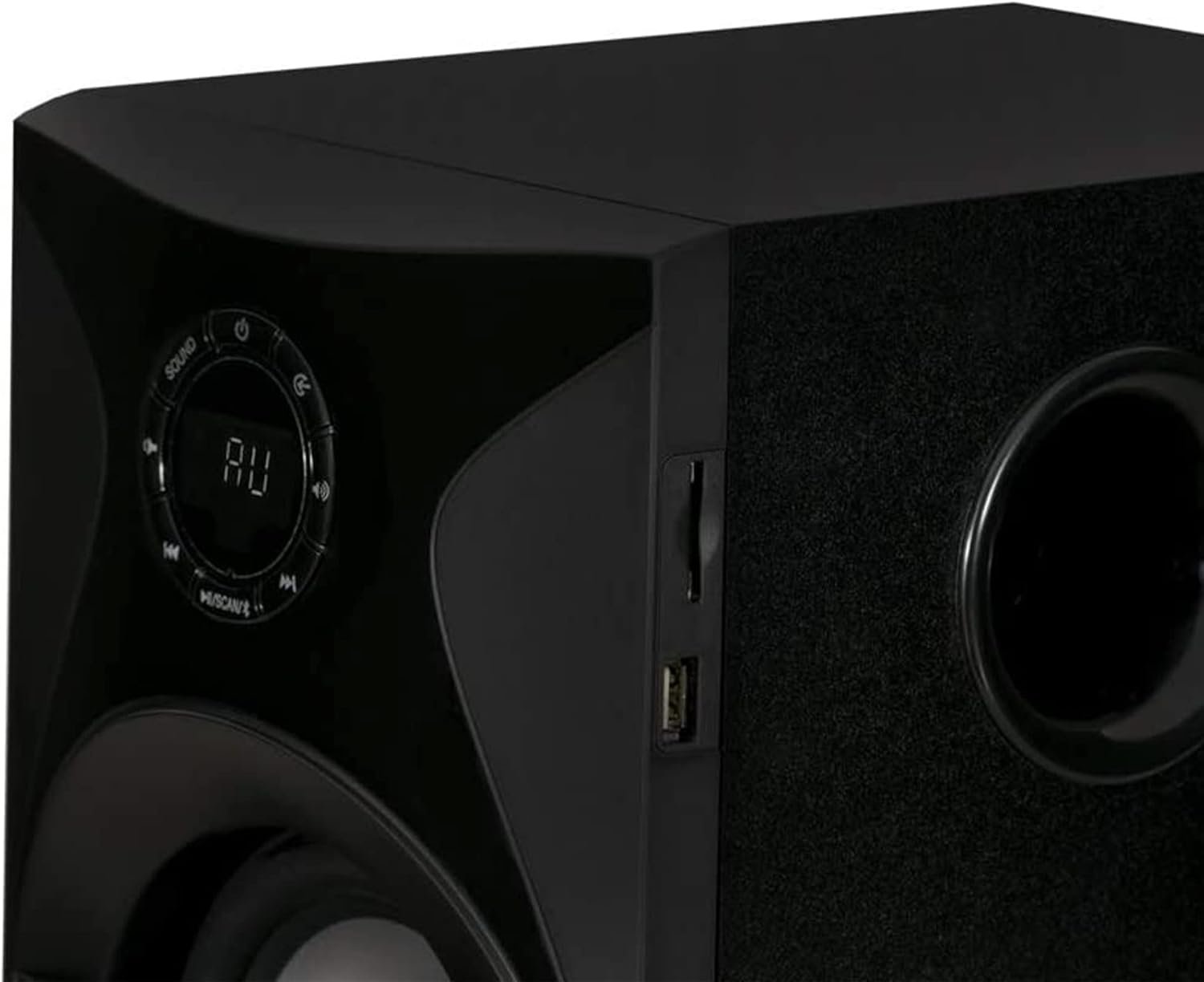 Goldwood Bluetooth 5.1 Surround Sound Home Theater Speaker System with LED Display, FM Tuner, USB/SD Inputs – 6-Piece Set with Remote Control, Black