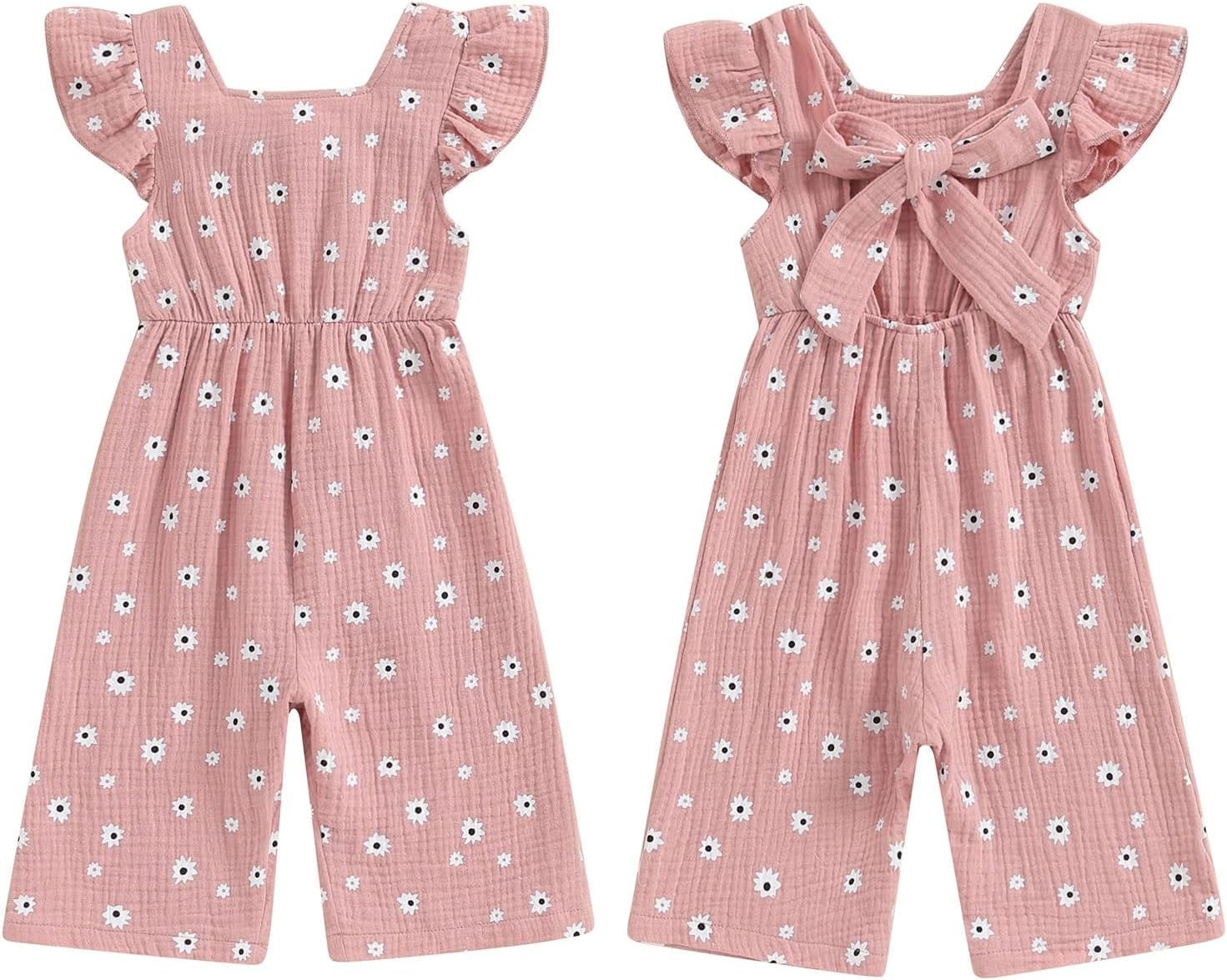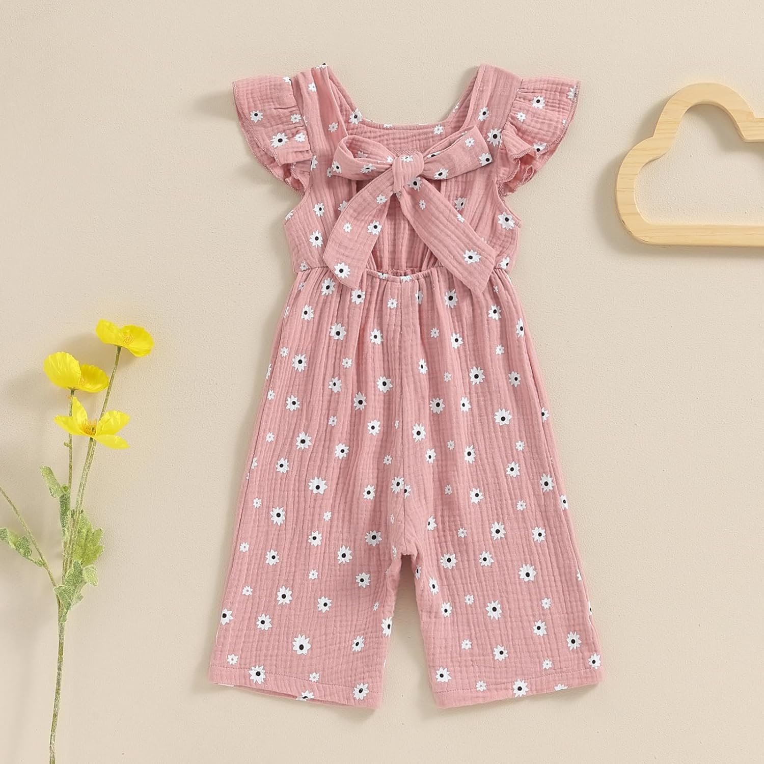 GOOCHEER Toddler Baby Girls Outfit Flower Print Jumpsuit Sleeveless Bowknot Romper Overall Pants Summer Clothes