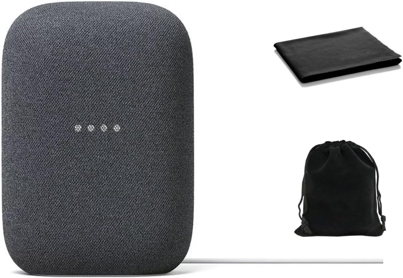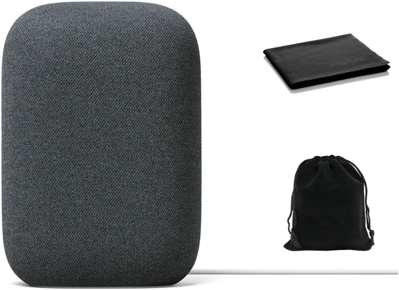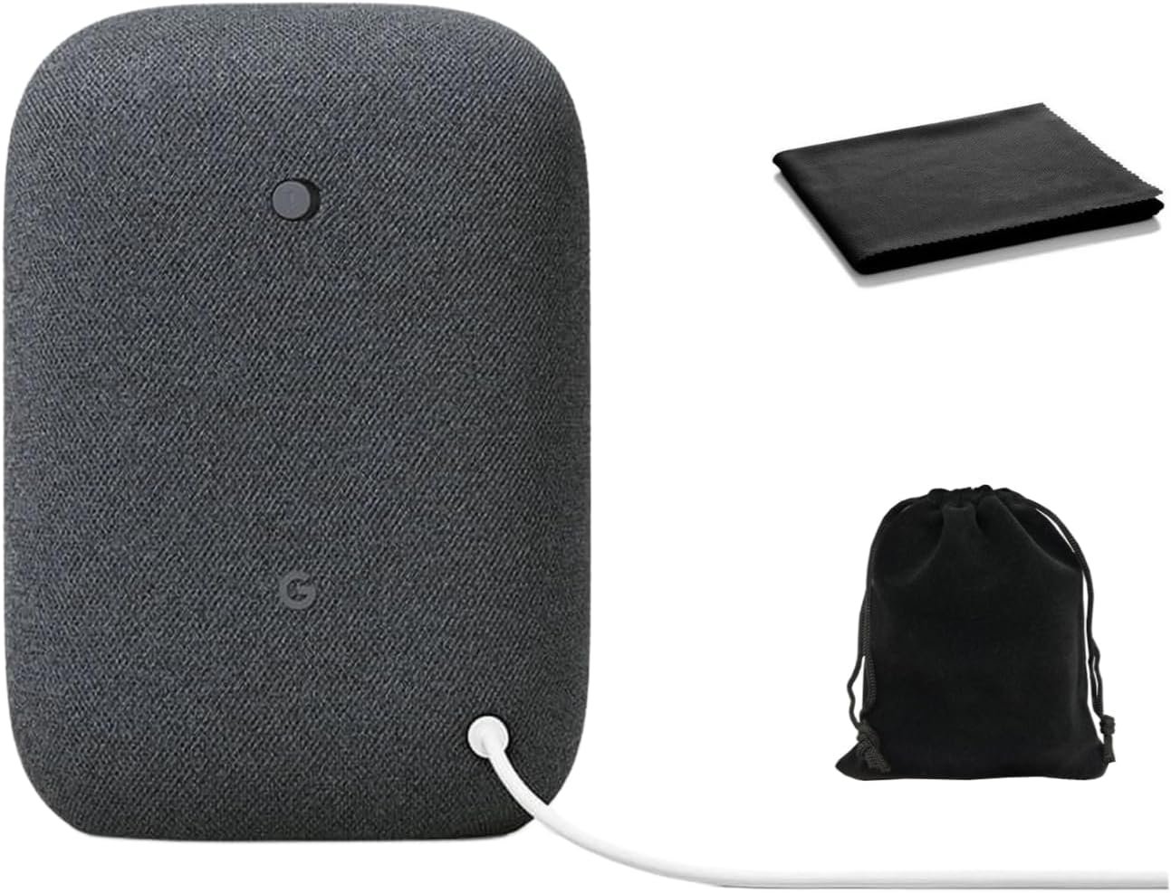 Google Audio Bluetooth Speaker – Wireless Music Streaming, Powerful Sound, Assistant Built-in, Wi-Fi and Bluetooth Connectivity, Smart Home Control, Stereo Pairing, Includes Pouch and Cloth