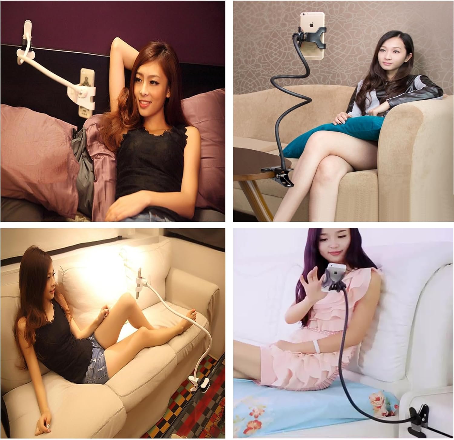 The gooseneck phone clamp mount is designed to: watch Netflix handsfree while lying in bed or sofa at home, use facetime with families when clipped on the desk, read recipes in the kitchen, taking selfies. And it also can be an overhead phone holder for video recording.
