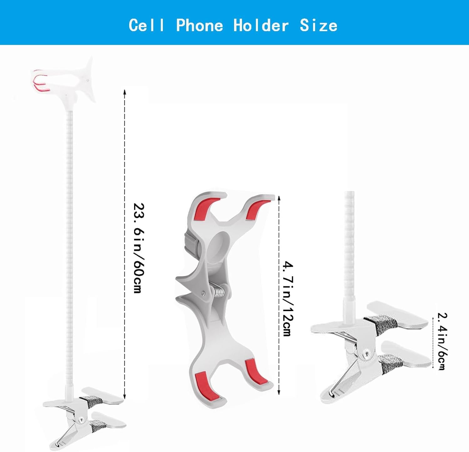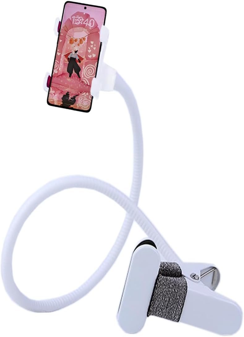 Gooseneck Phone Holder,Lazy Bracket, Cell Phone Holder Stand for Bed Flexible Arm Adjustable Cell Phones Mount Clamp on Desk Bedframe Compatible with Cellphone 3.5”-7” Devices (White)