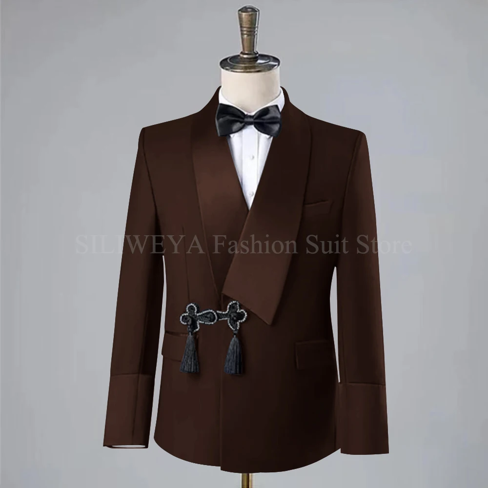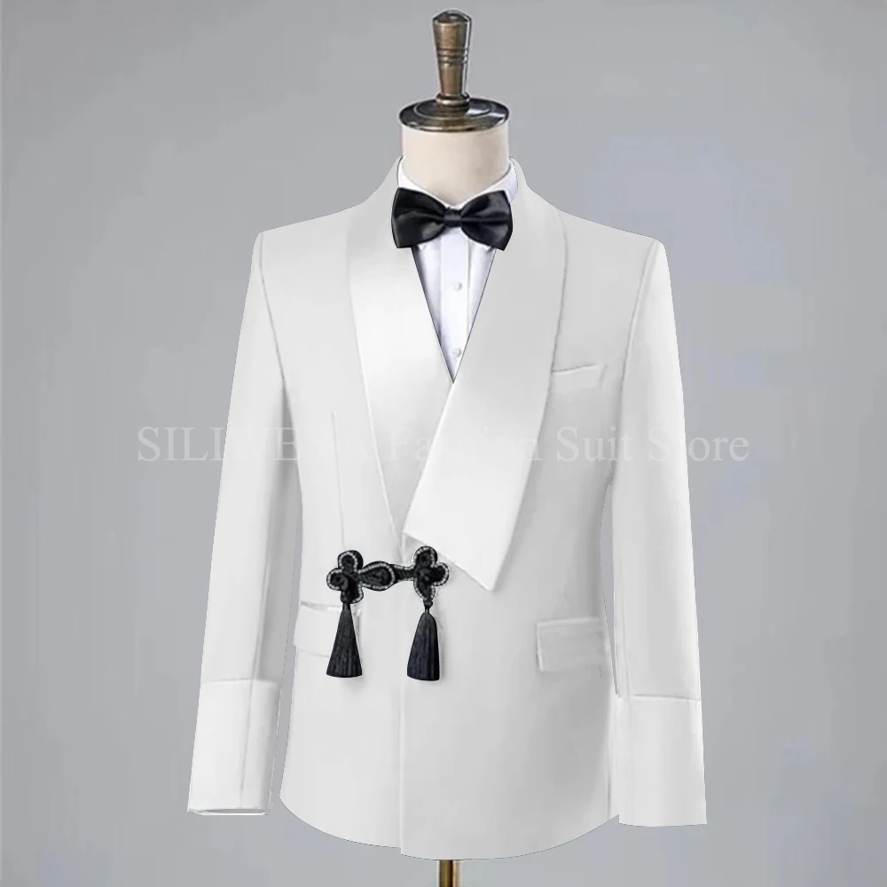 Gorgeous Disc Screw Thread Men Suit Wedding Tassel Shawl Lapel One Buttons Groom Tuxedo Slim Fit Suits 2 Piece(Blazer Pant)