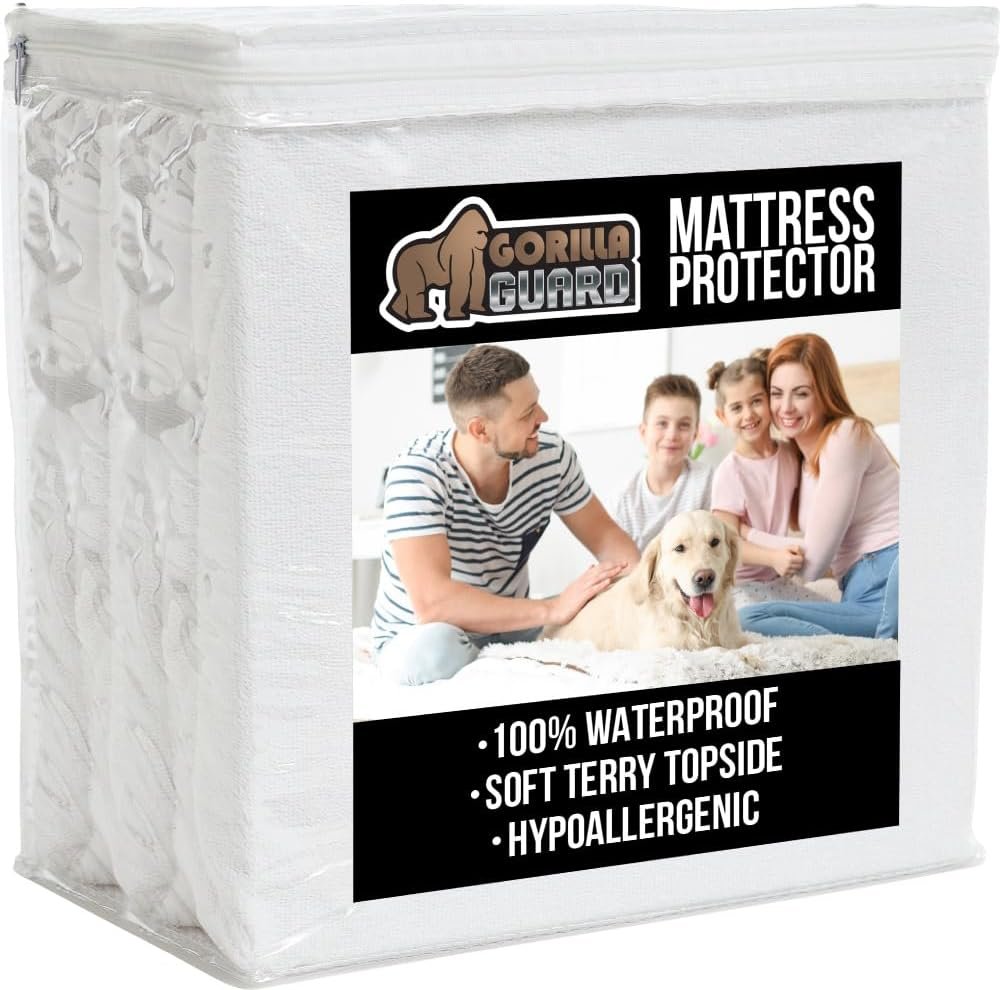 GORILLA GRIP 100% Waterproof Mattress Protector, Queen Size Stain Protection Noiseless Fitted Terry Cloth Bed Cover, Elastic Stretchable Deep Pockets, Hypoallergenic Breathable Machine Wash Bedding