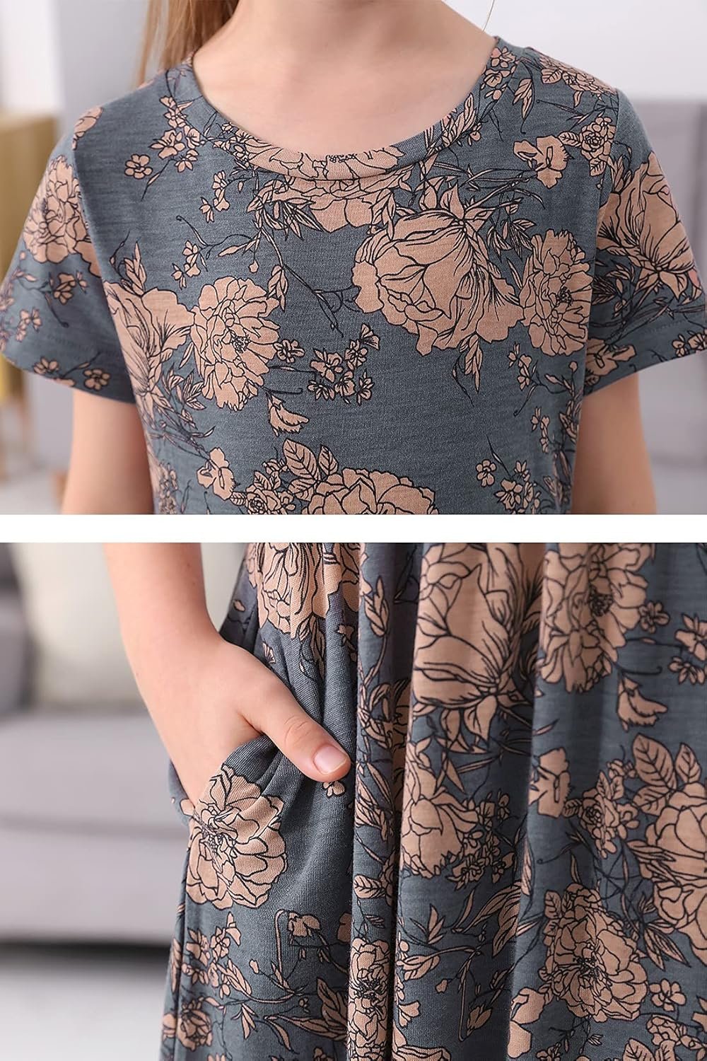 GORLYA Girl’s Short Sleeve Floral Print Loose Casual Long Maxi Dress with Pockets 4-12 Years