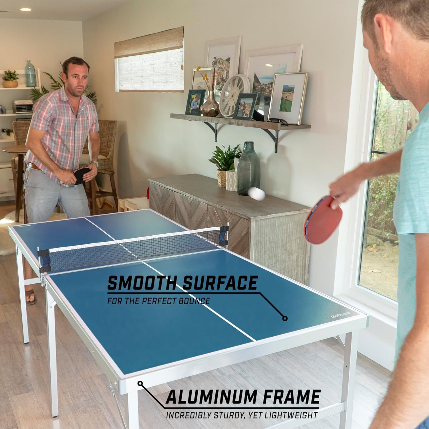 PREMIUM CONSTRUCTION: heavy-duty aluminum frame keeps the table sturdy yet lightweight and the smooth playing surface gives the perfect bounce for hours of seamless rallies