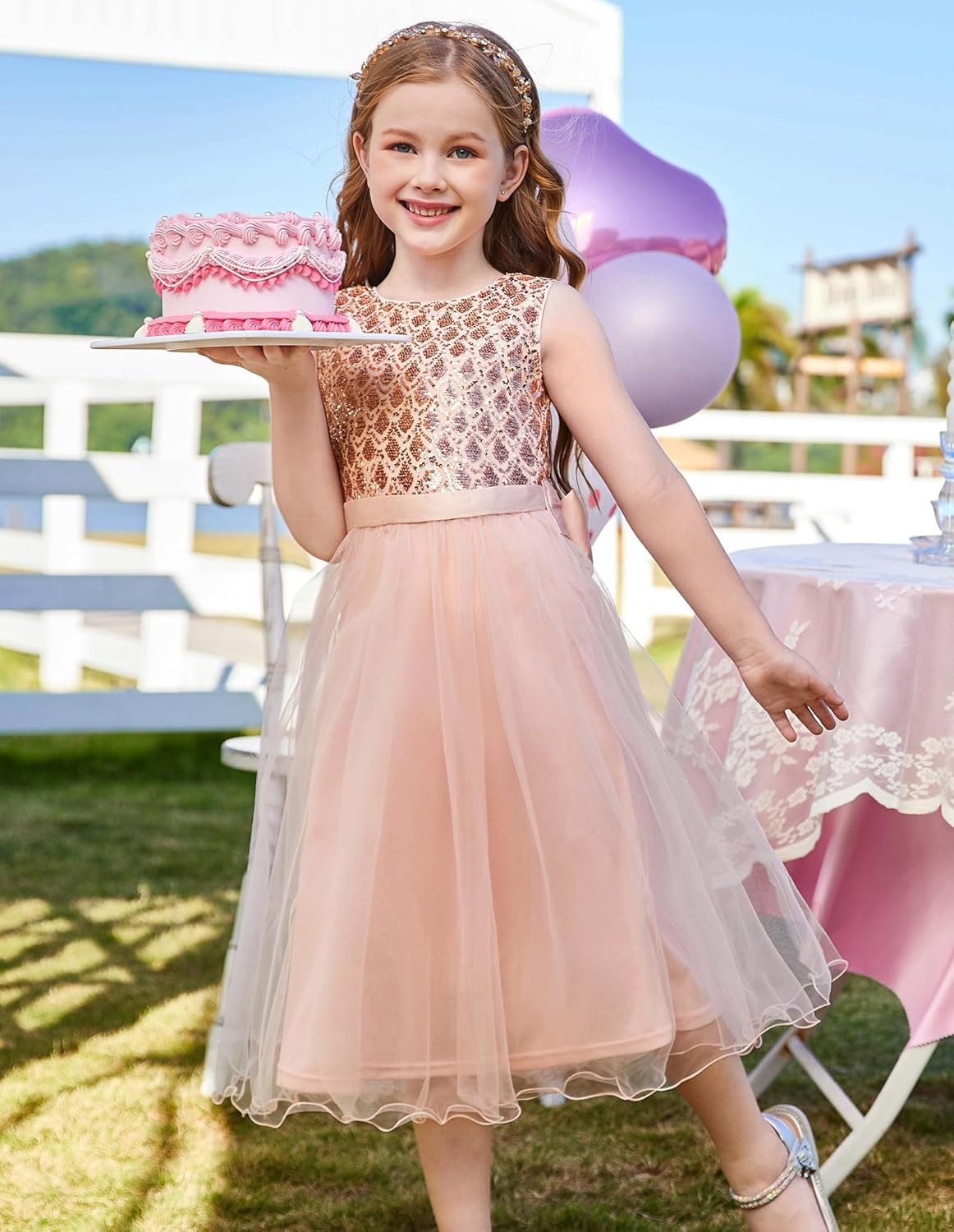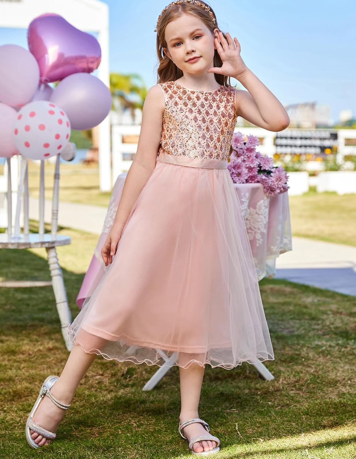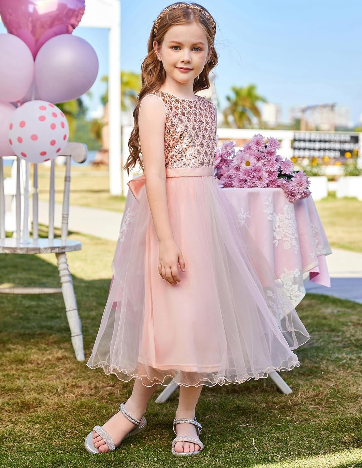 GRACE KARIN Flower Girl Dress V-Back Sequin Party Tulle Dresses Kids Birthday Formal Wedding Pageant Princess Dress 5-12