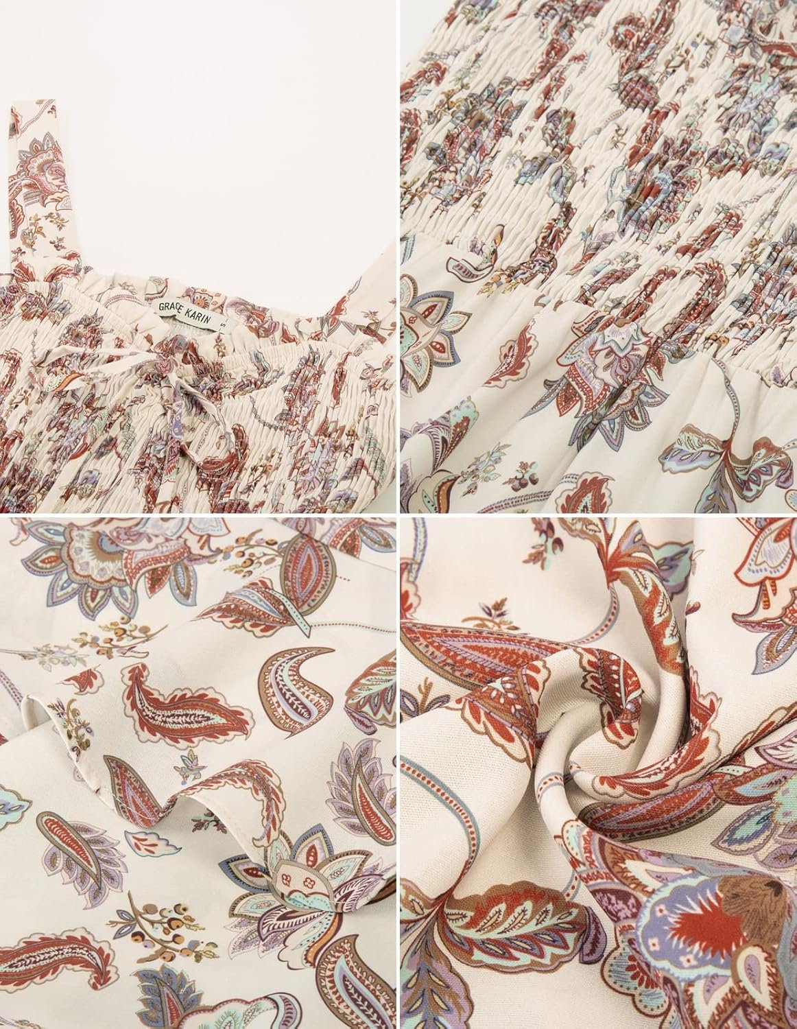 Women’s Boho Smocked Dress Summer Casual Sleeveless Floral Print Dress