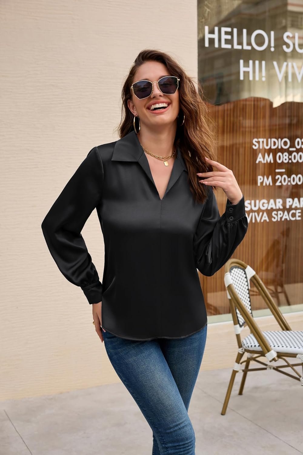 The Satin Blouses for Women is Easy Pair with Any Jeans, Bag, Leggings, Earrings