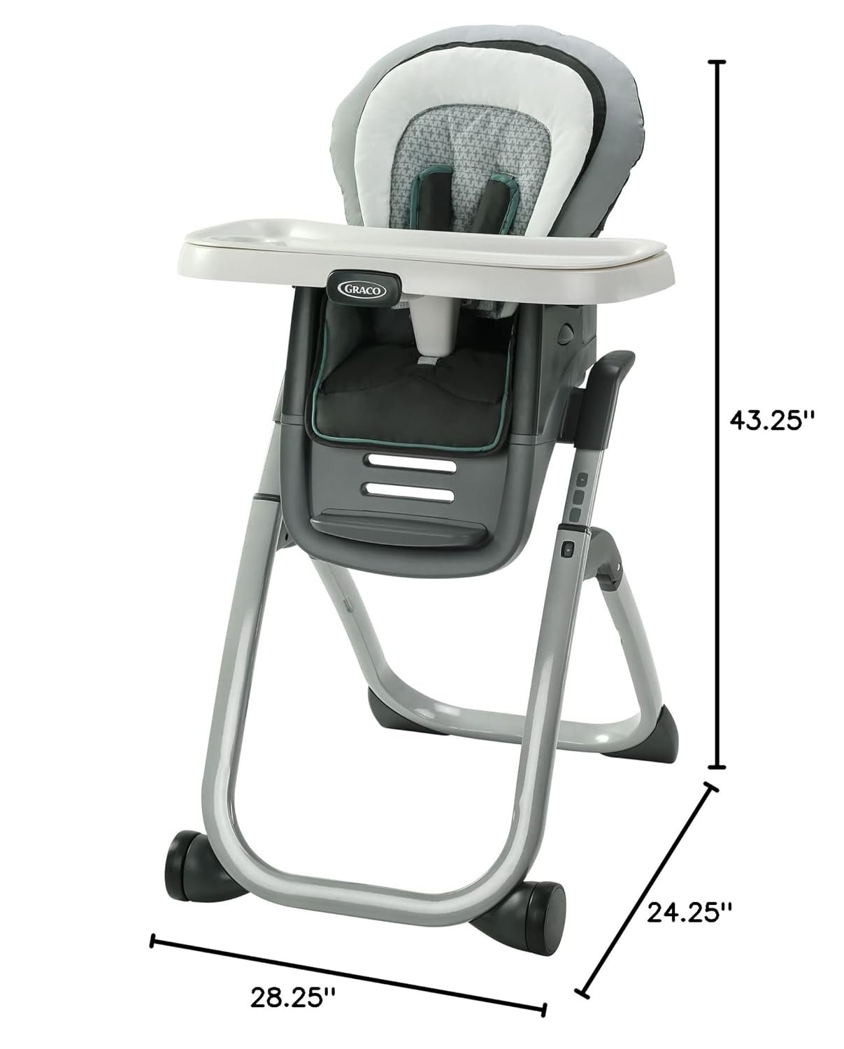 The Graco DuoDiner DLX 6-in-1 Highchair offers 6 growing stages from infant highchair to seating two kids at once. The highchair features infant body support and 3 recline positions for early comfort and is fully-featured with a self-standing fold and 5 height positions to match dining table height. When baby is ready to join the family at the table, use the infant or toddler booster on a dining room chair. Then, convert to an elevated youth stool to give your older child their own seat at the table. This highchair can even seat two kids at once to grow with your family!