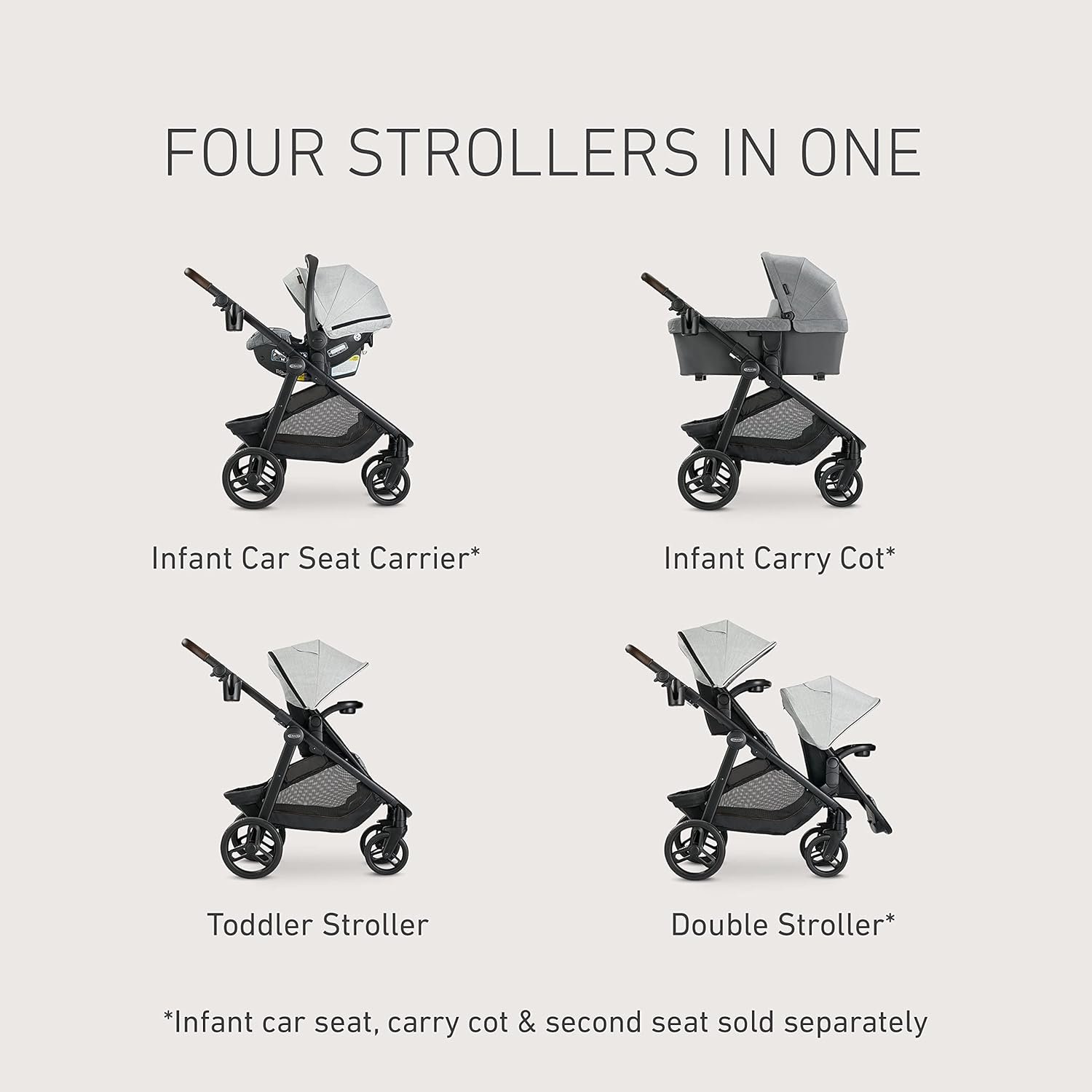 4 Strollers in 1: Infant car seat carrier, infant carry cot, toddler stroller, double stroller