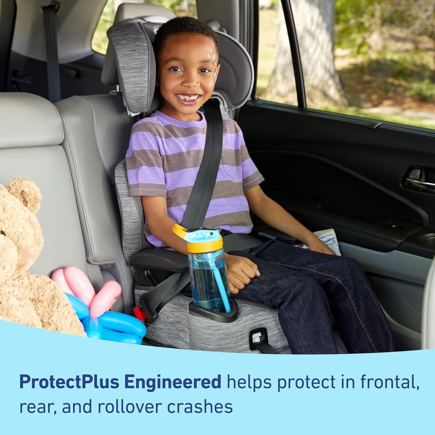 Easy Installation: One-hand front-adjust LATCH system securely fastens the booster to the vehicle seat