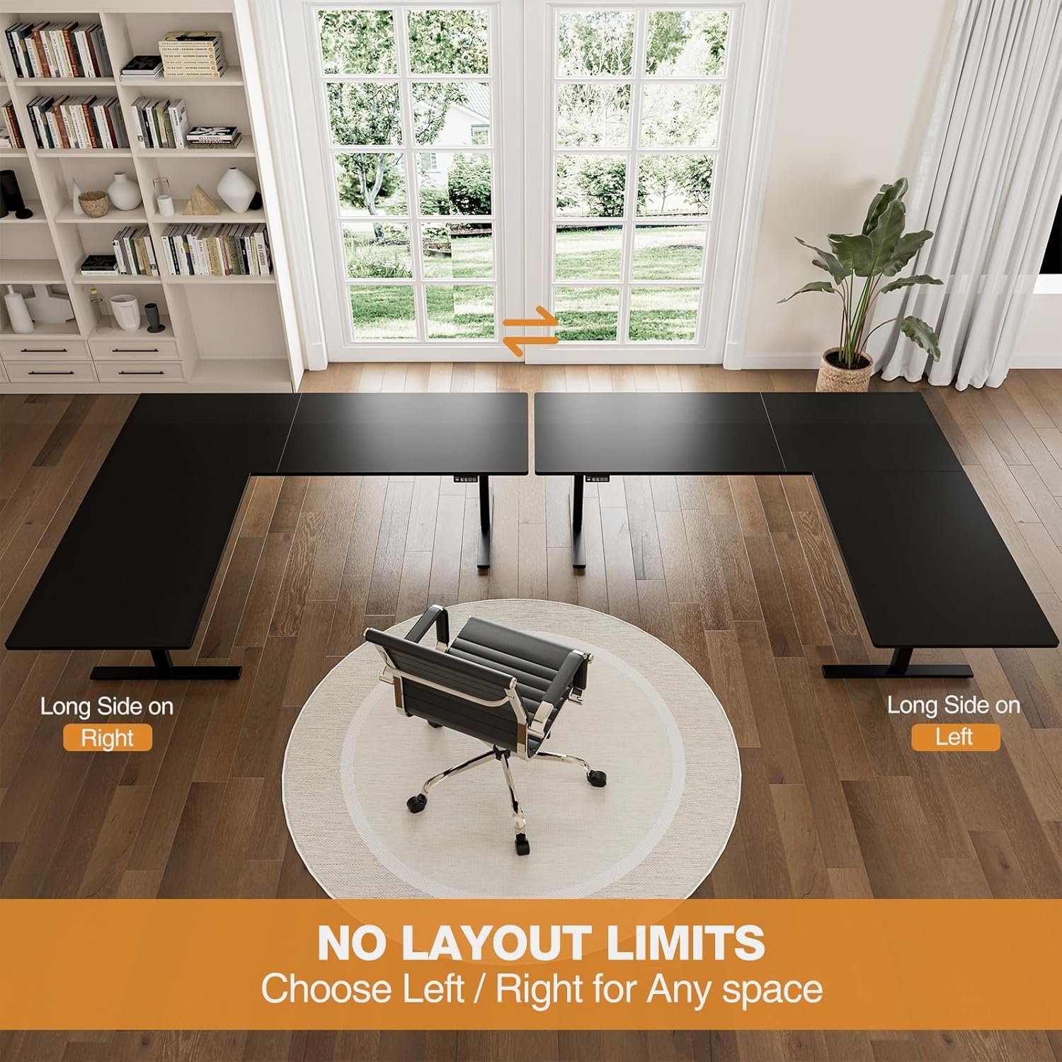 【Dual-Sided L-Shaped Design & Corner Flexibility】Optimized for corner workspaces, the 160x140cm (63″x55″) L-shaped desk features a reversible layout (left or right orientation), maximizing space efficiency and adaptability. Perfect for multi-device setups (3 PCs + laptop + accessories), its expansive surface keeps everything within arm’s reach, streamlining workflows for home offices, gaming, or remote work.
