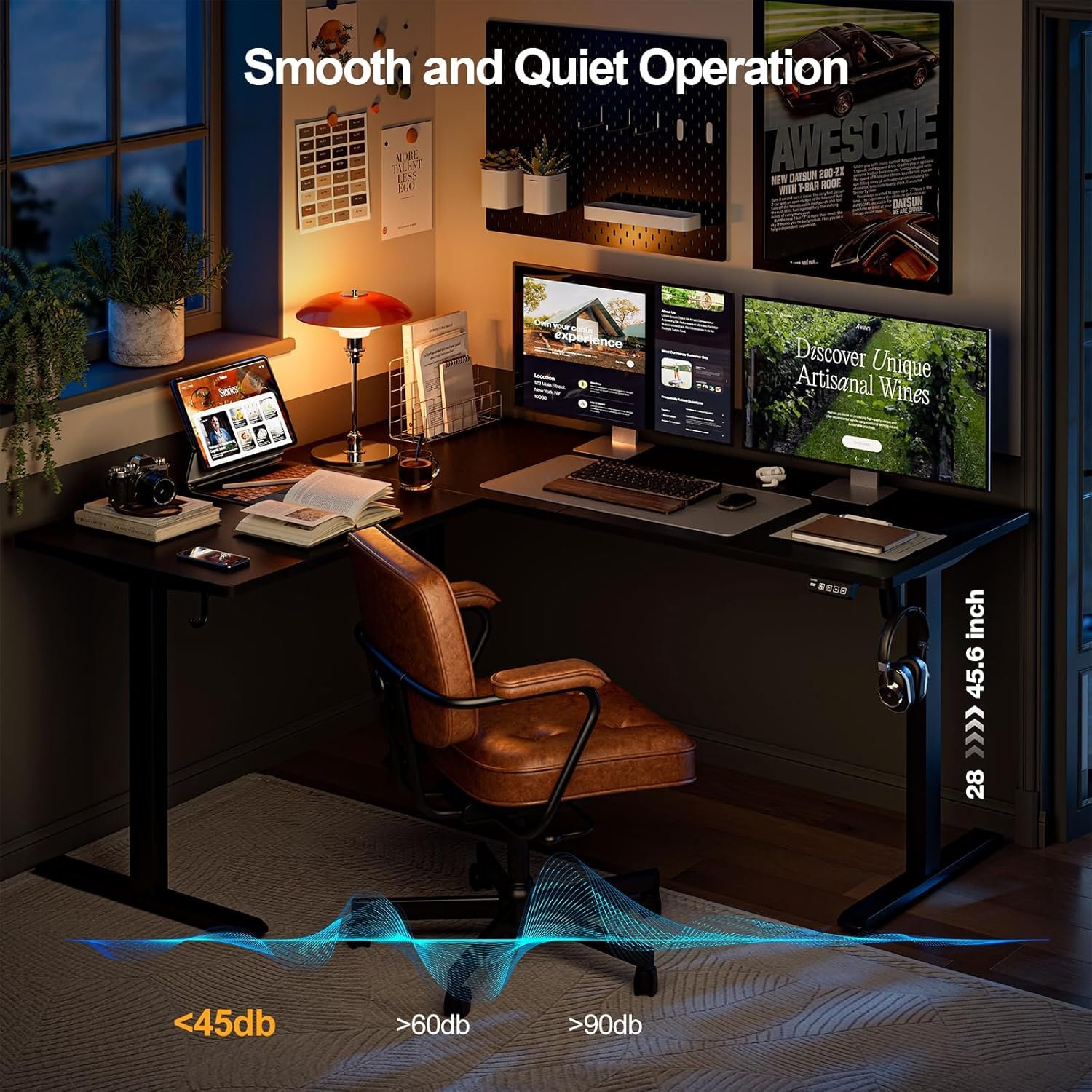 【Ergonomic Health-First Solution】Promote active living with effortless sit-stand transitions. The quiet, powerful motor (under 45dB) adjusts heights in seconds, encouraging posture balance and energy levels. Perfect for gamers, creatives, or professionals seeking ergonomic comfort and mental alertness.