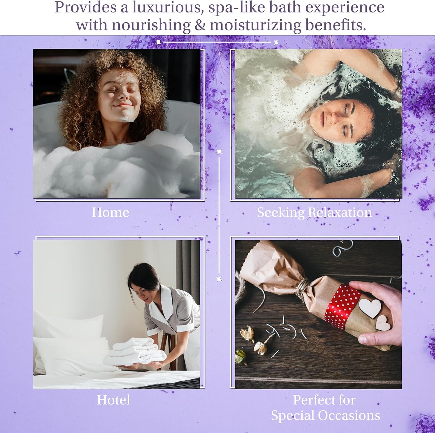Luxurious Relaxation: Indulge in the calming essence of bath beads for women relaxing with our lavender and chamomile-infused bath oil beads for bathtub. Perfect for unwinding after a long day, these bath beads for bathtub provide a spa-like experience at home.