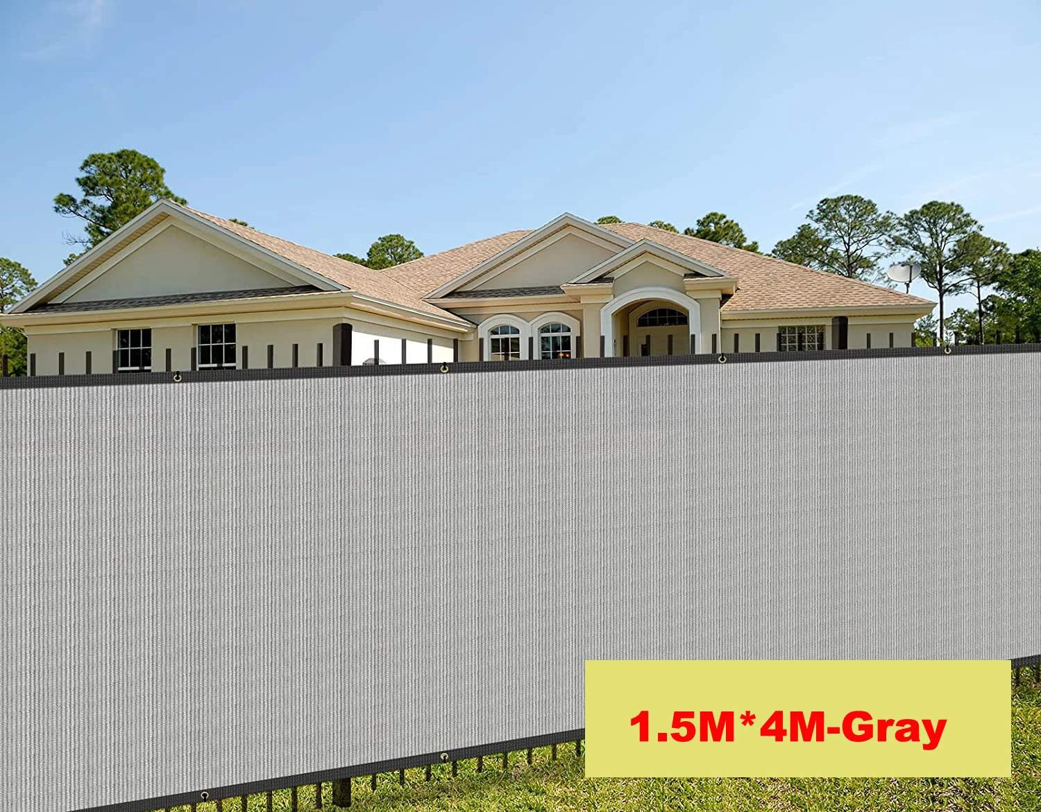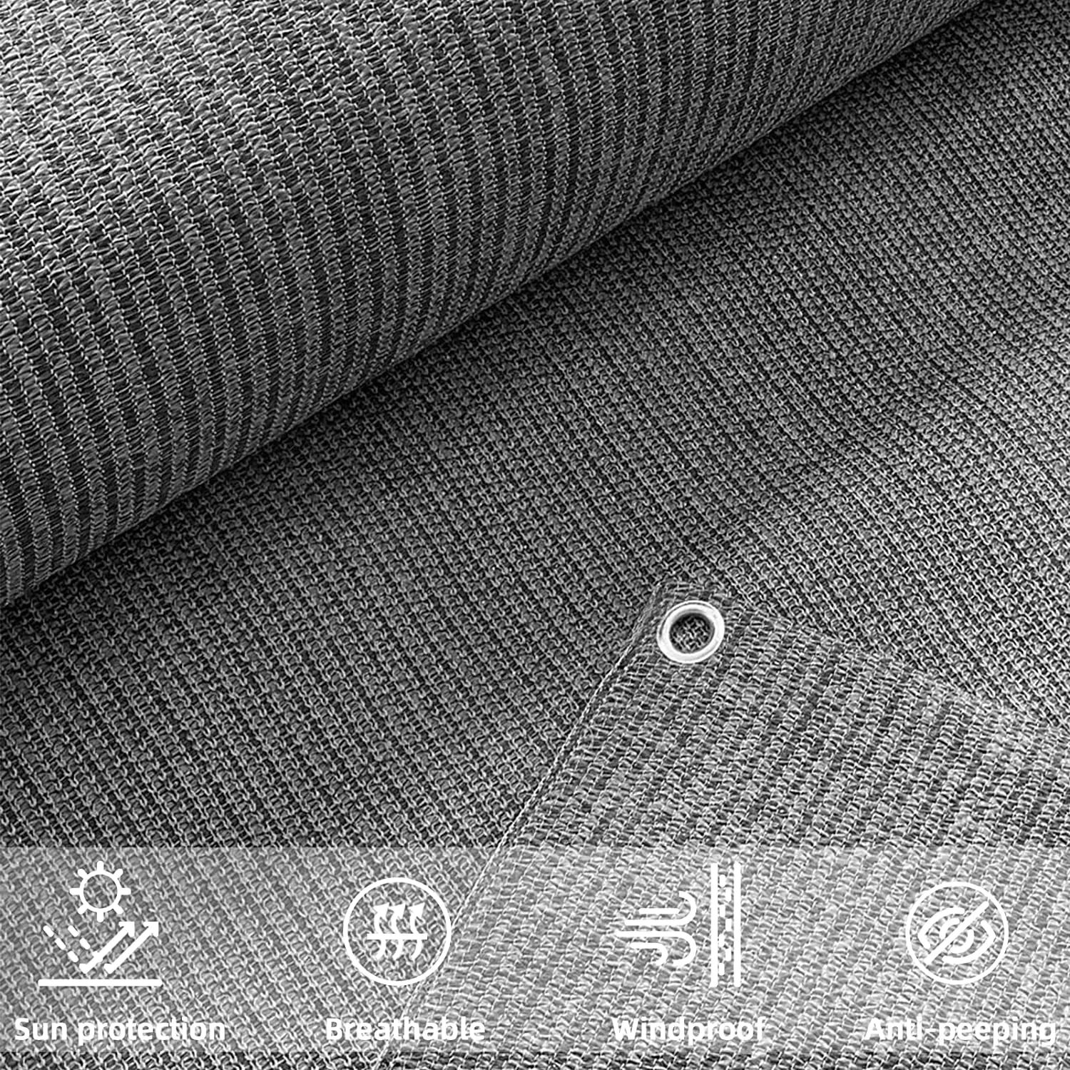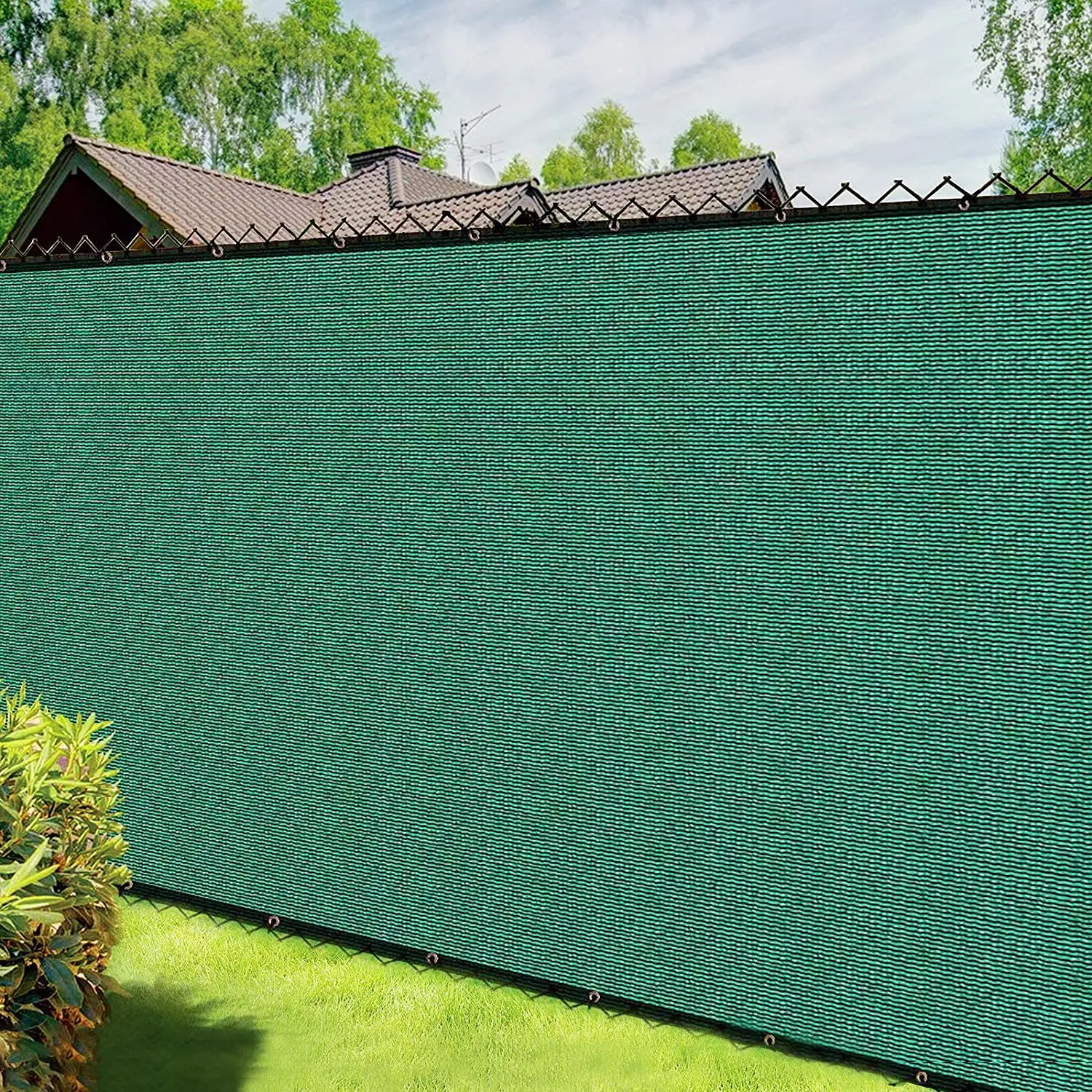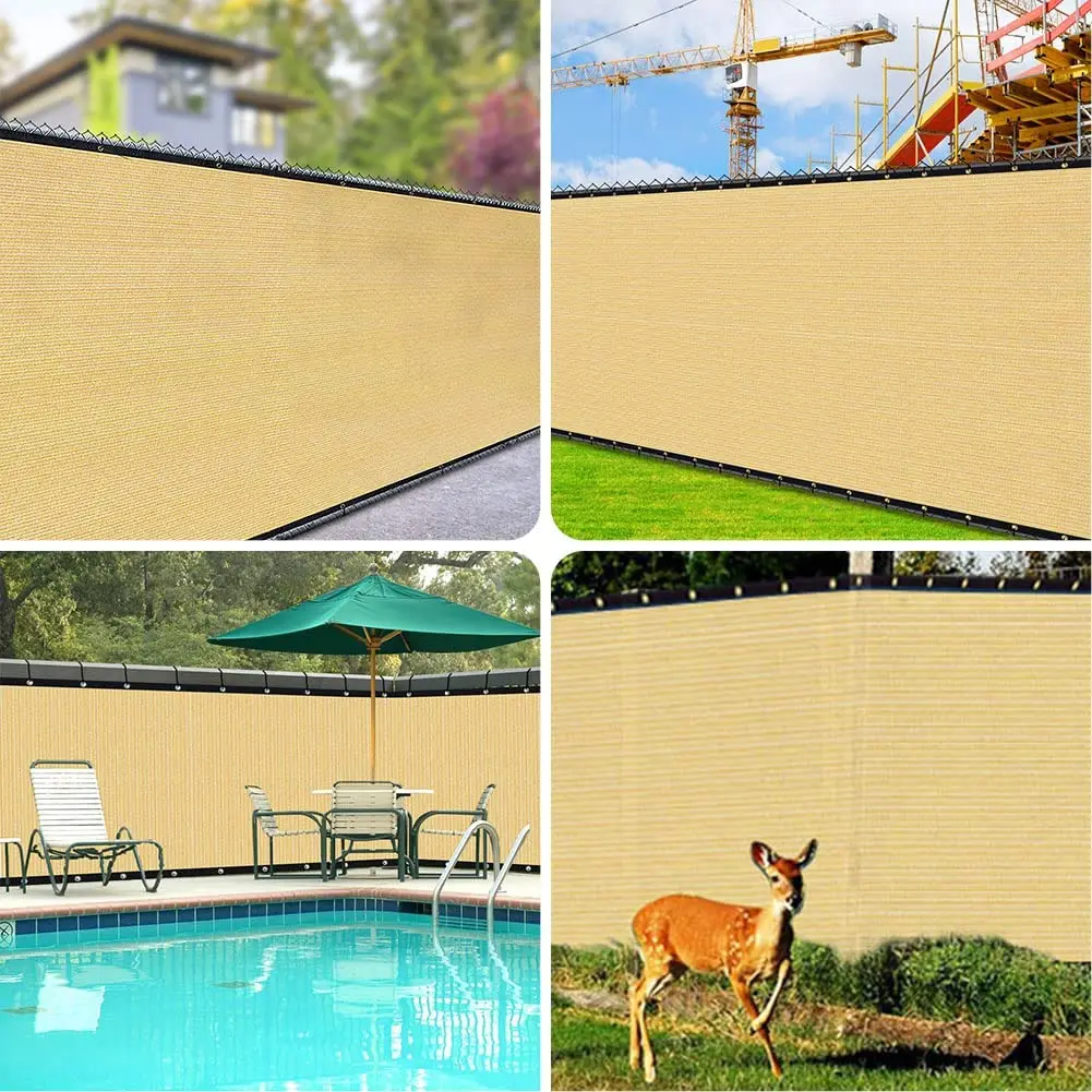 UV and water resistant material, with rust free aluminum grommets; double grommets placed evenly on all four sides and attached to your fence with included zip ties