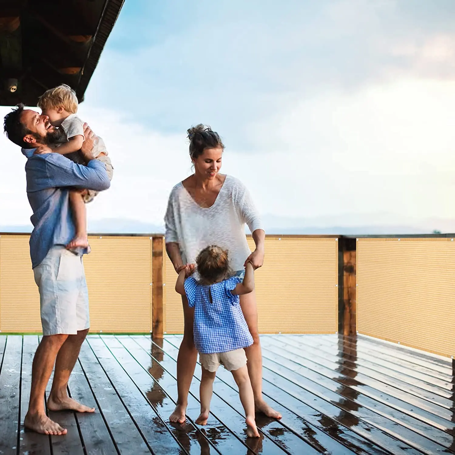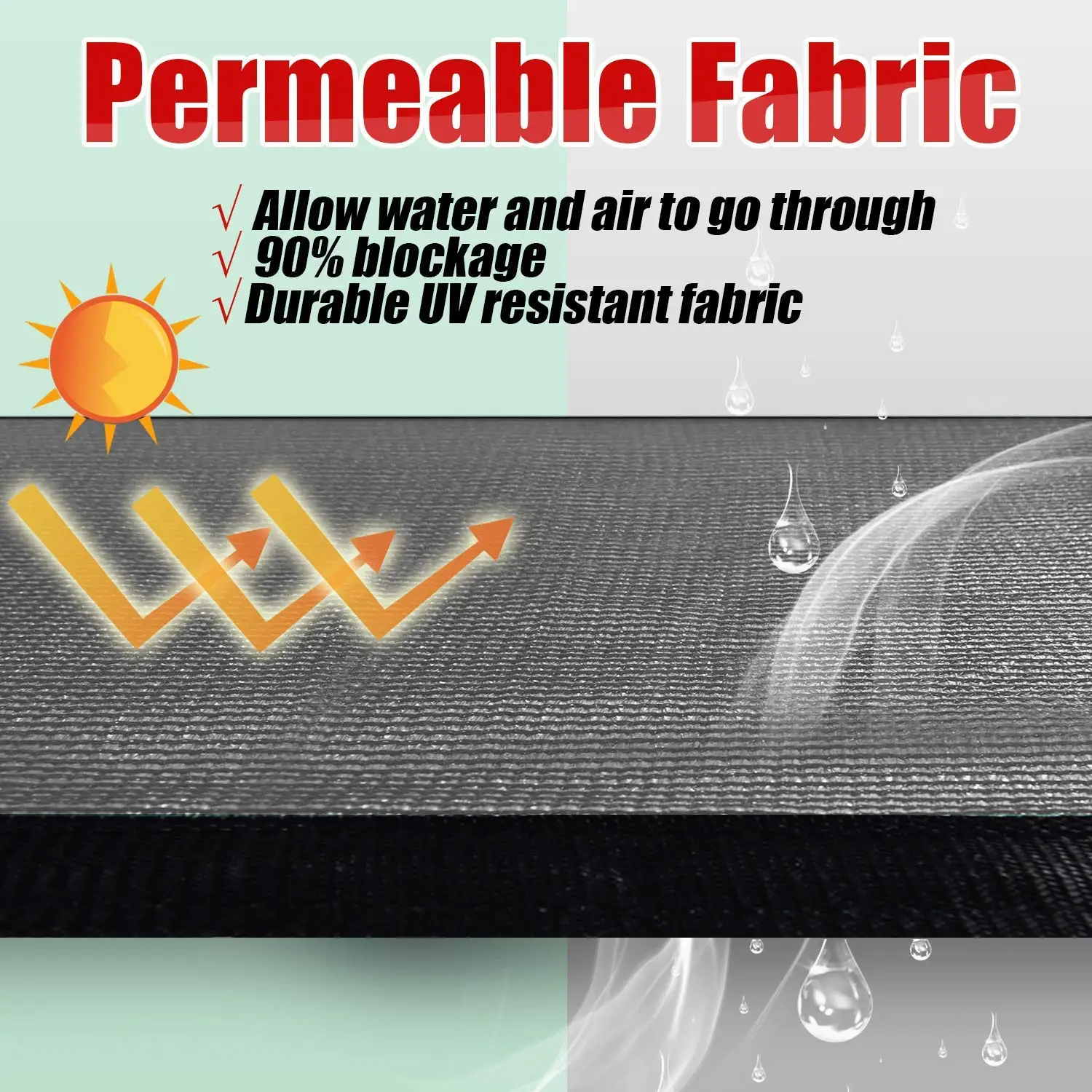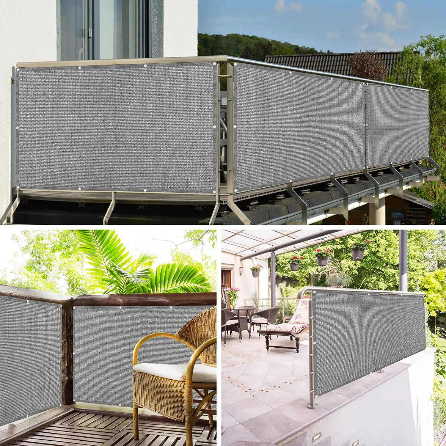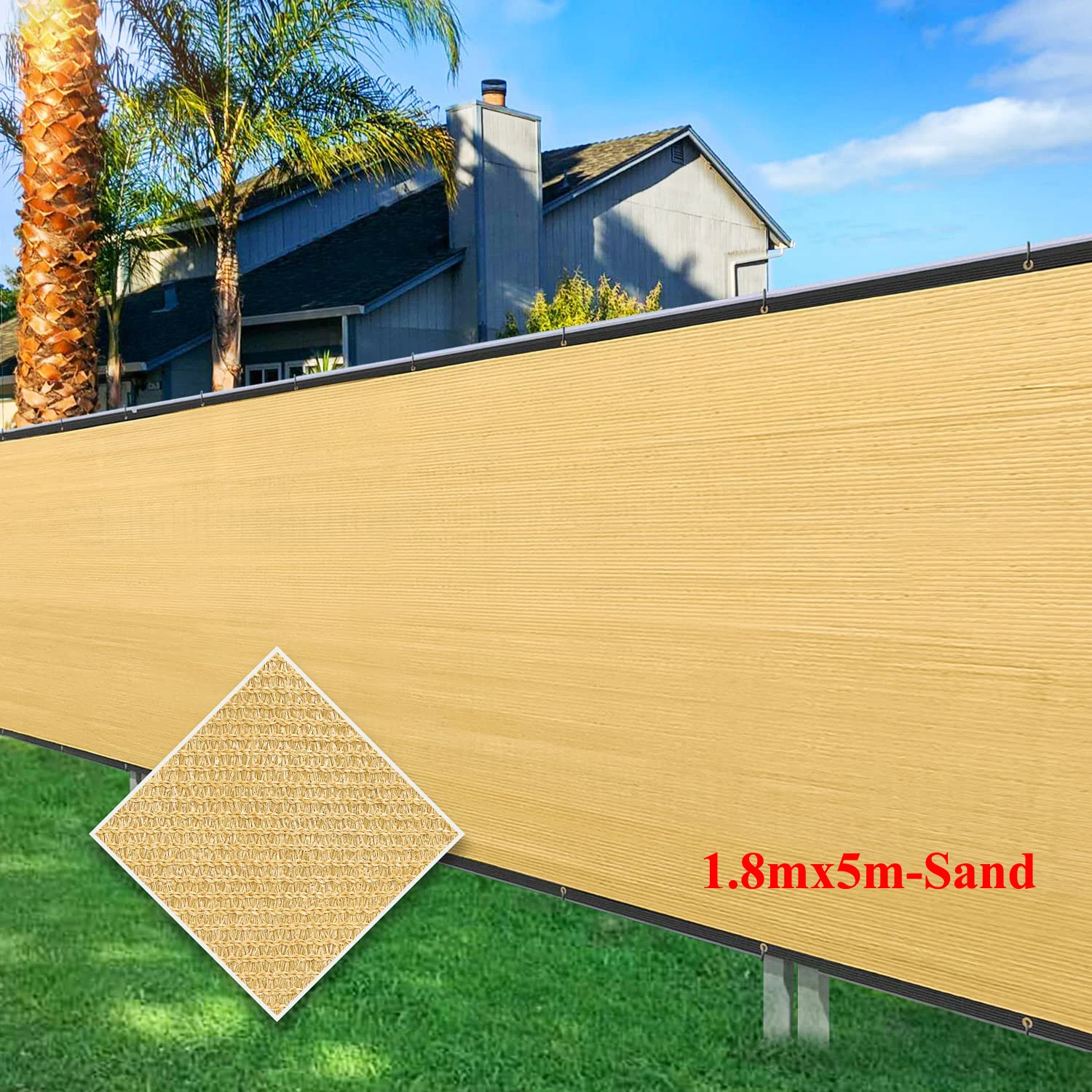 UV and water resistant material, with rust free aluminum grommets; double grommets placed evenly on all four sides and attached to your fence with included zip ties