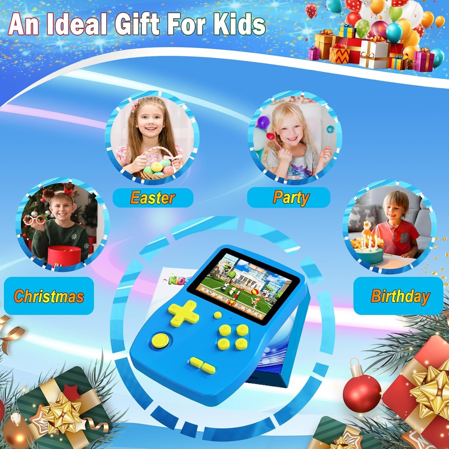 Great Boy 32 Bit Handheld Games Toys for Kids with 139 Video Games Boys Girls Children’s 3.0 Inches IPS Screen Rechargeable Gaming Device Preschooler Party Easter Birthday Xmas Gift (Blue)
