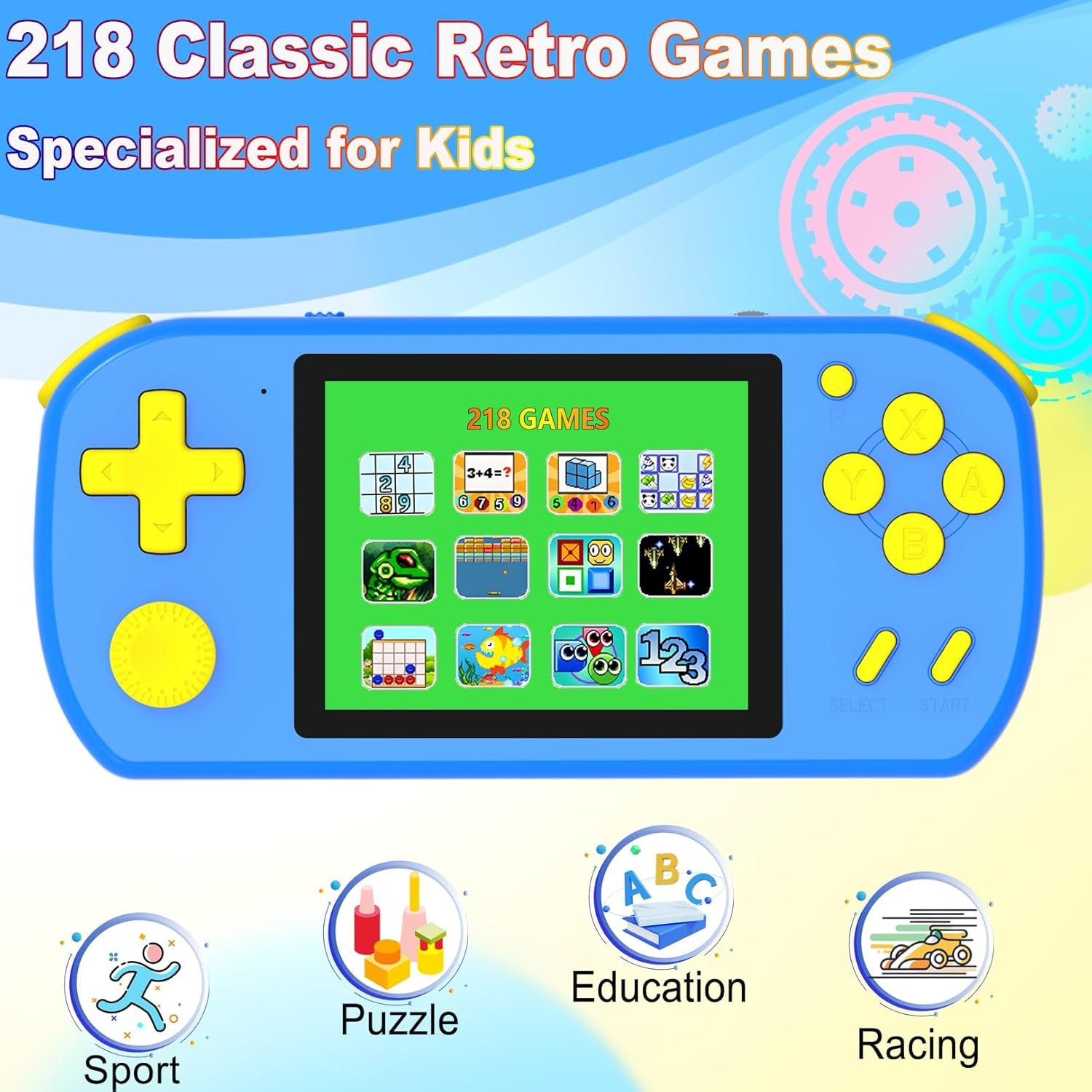 Great Boy Handheld Games for Kids with 218 Retro Video Game 3.0” Color Screen Rechargeable Arcade Gaming Player,Birthday Xmas Gift (Blue)