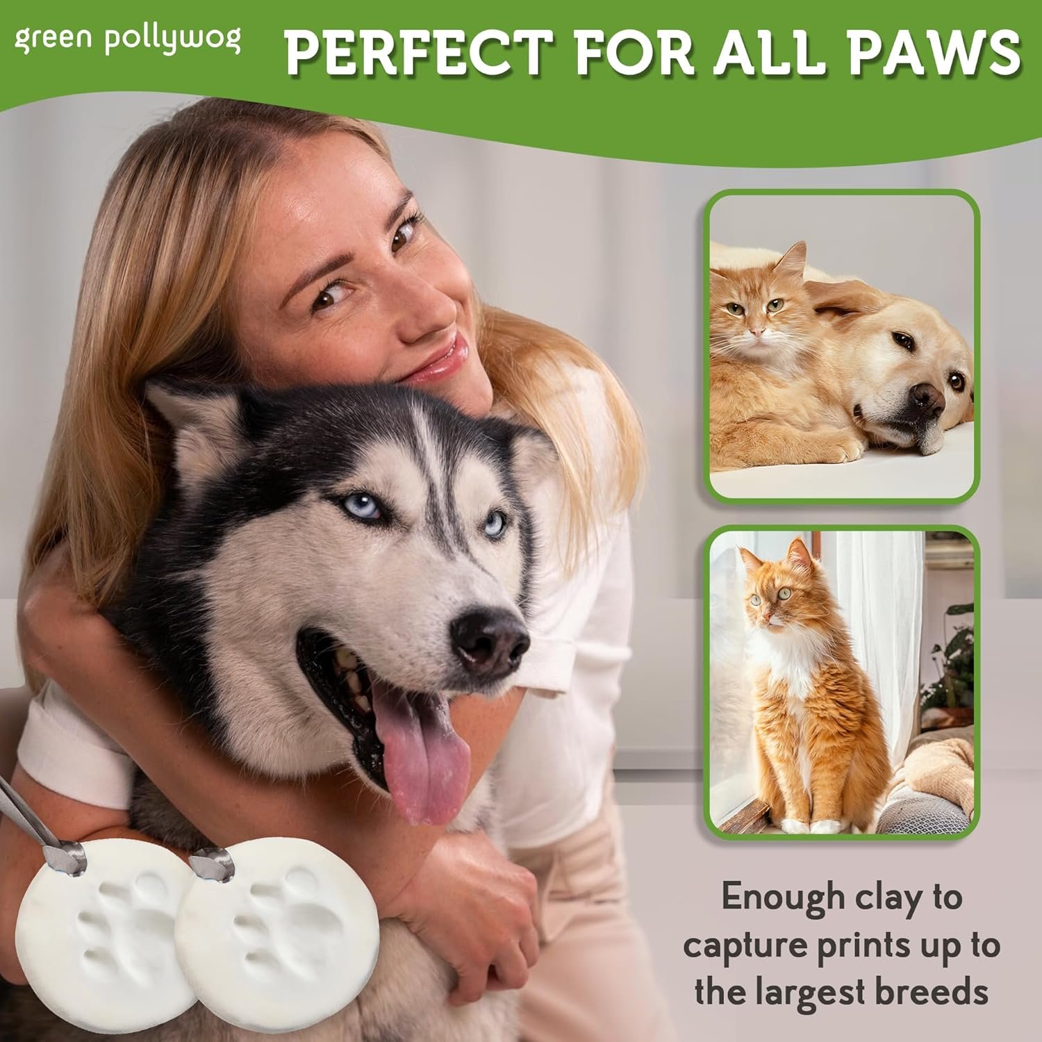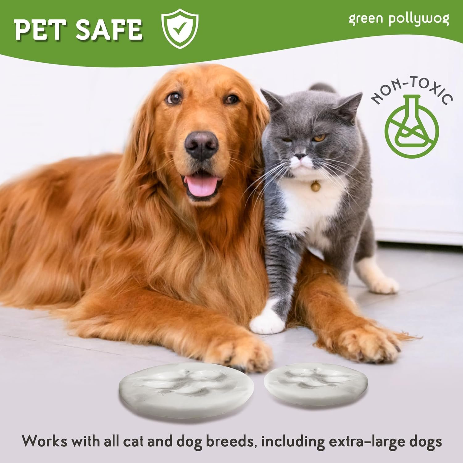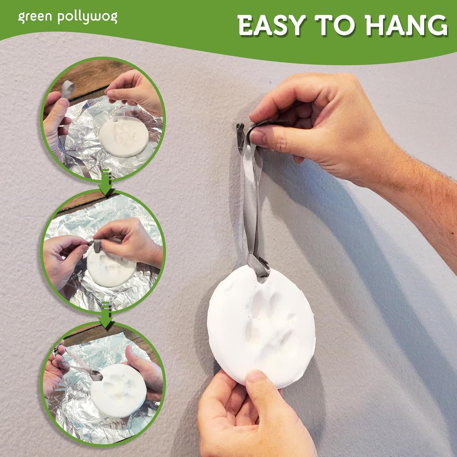 Green Pollywog Clay Paw Print DIY Ornament | Hanging Decoration with Air-Dry Clay Kit | Extra-Large Imprint Keepsake for Pets