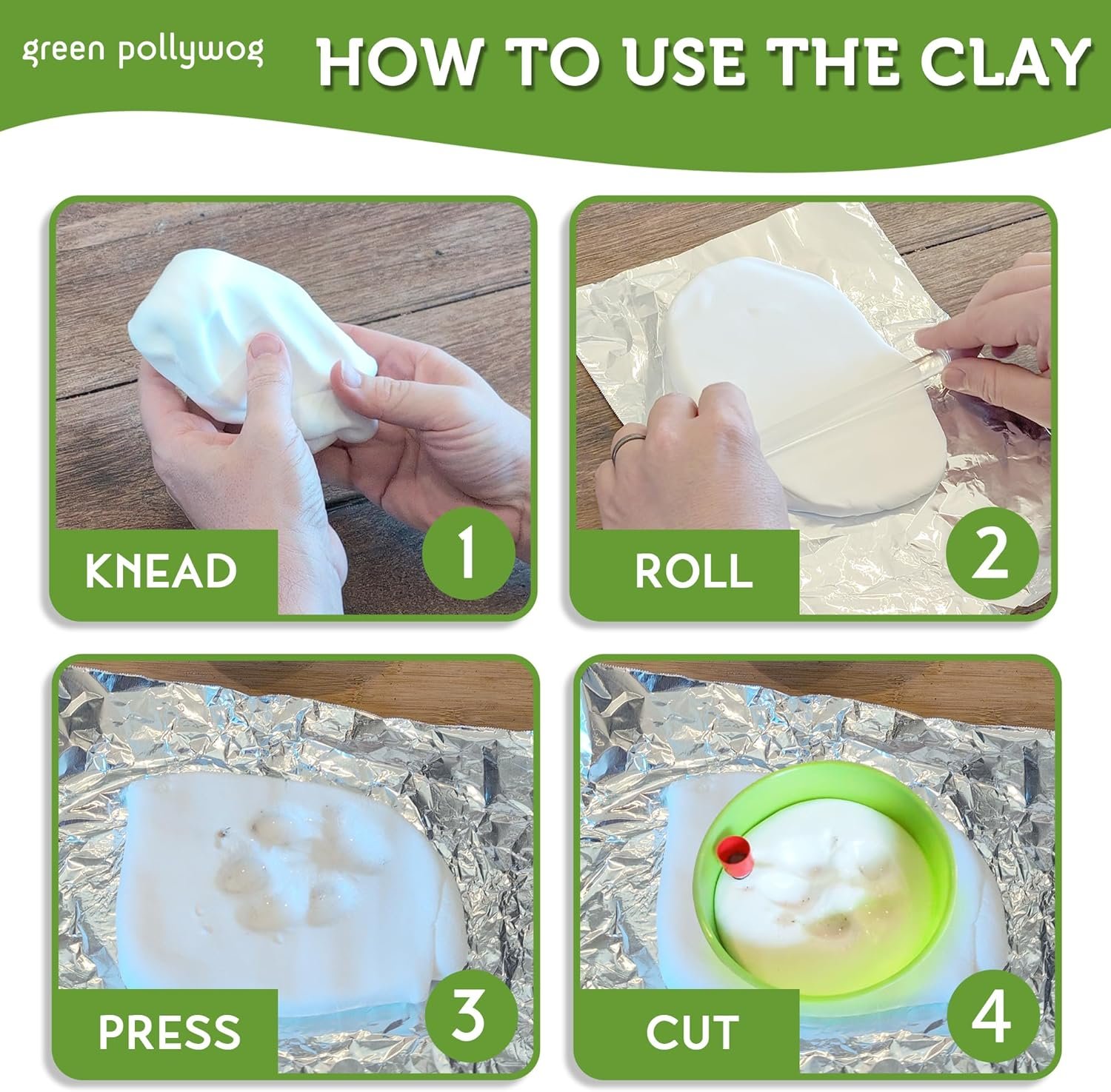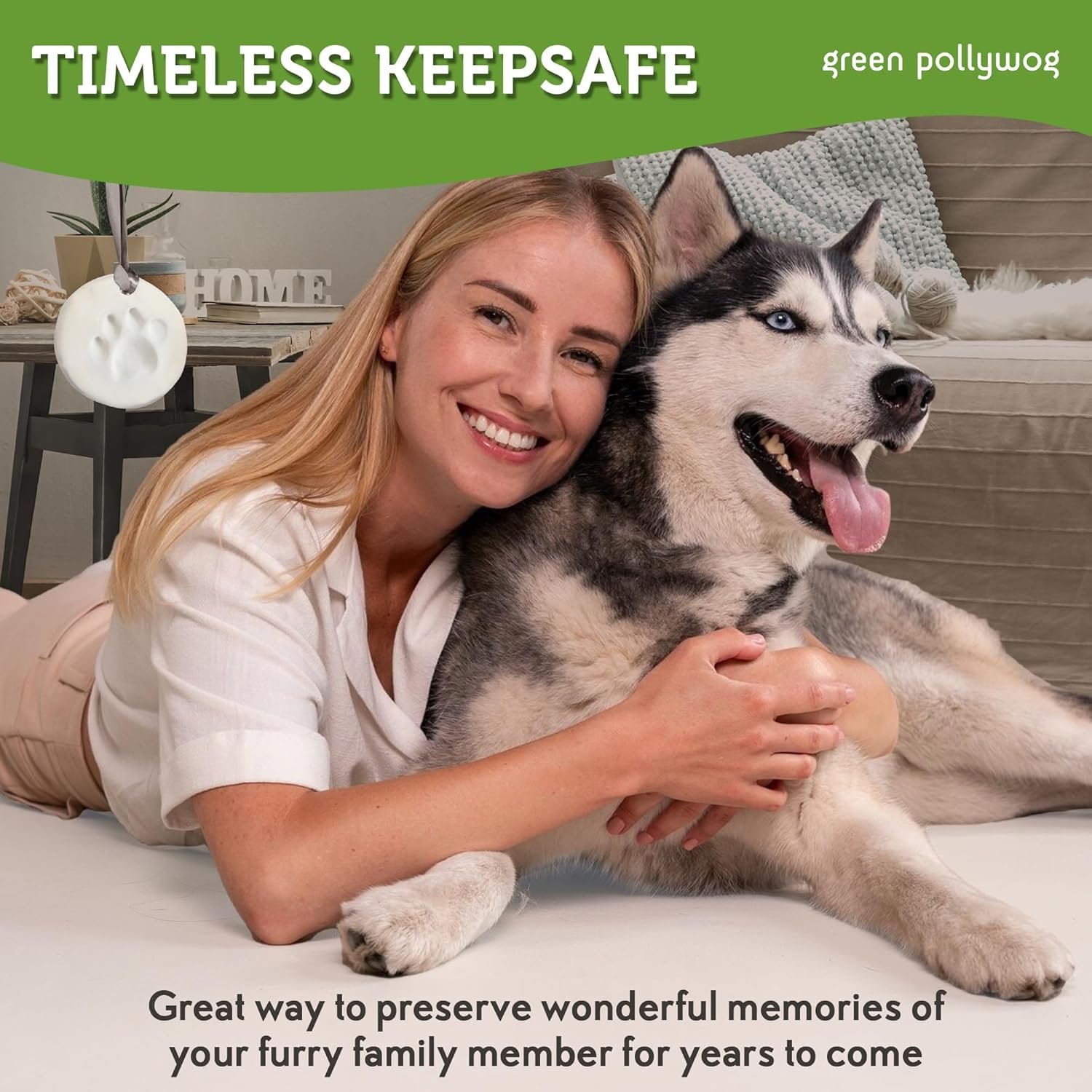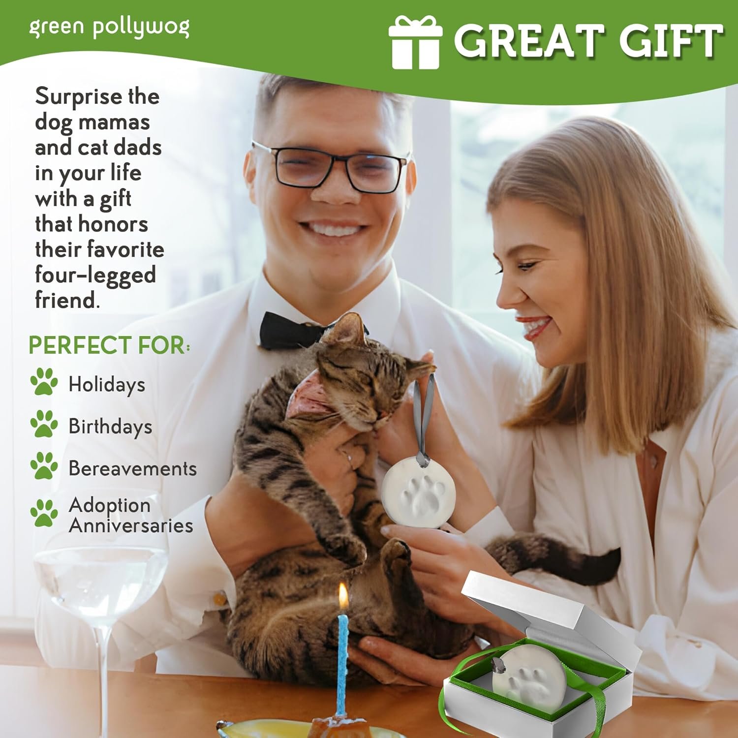 Green Pollywog Clay Paw Print DIY Ornament | Hanging Decoration with Air-Dry Clay Kit | Extra-Large Imprint Keepsake for Pets