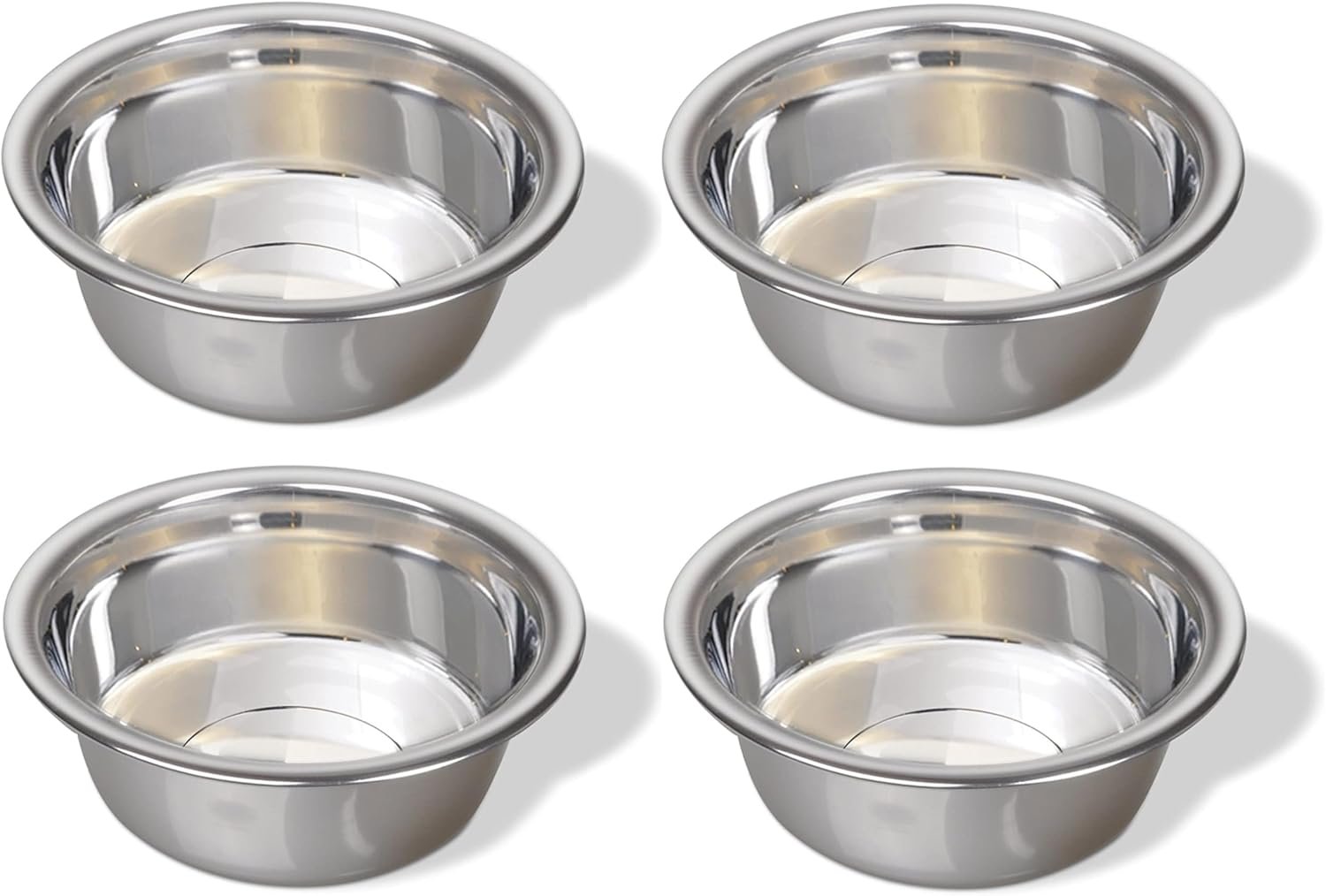 Set of 4 Stainless Steel Food and Water Bowls for puppies, dogs, cats, or kittens