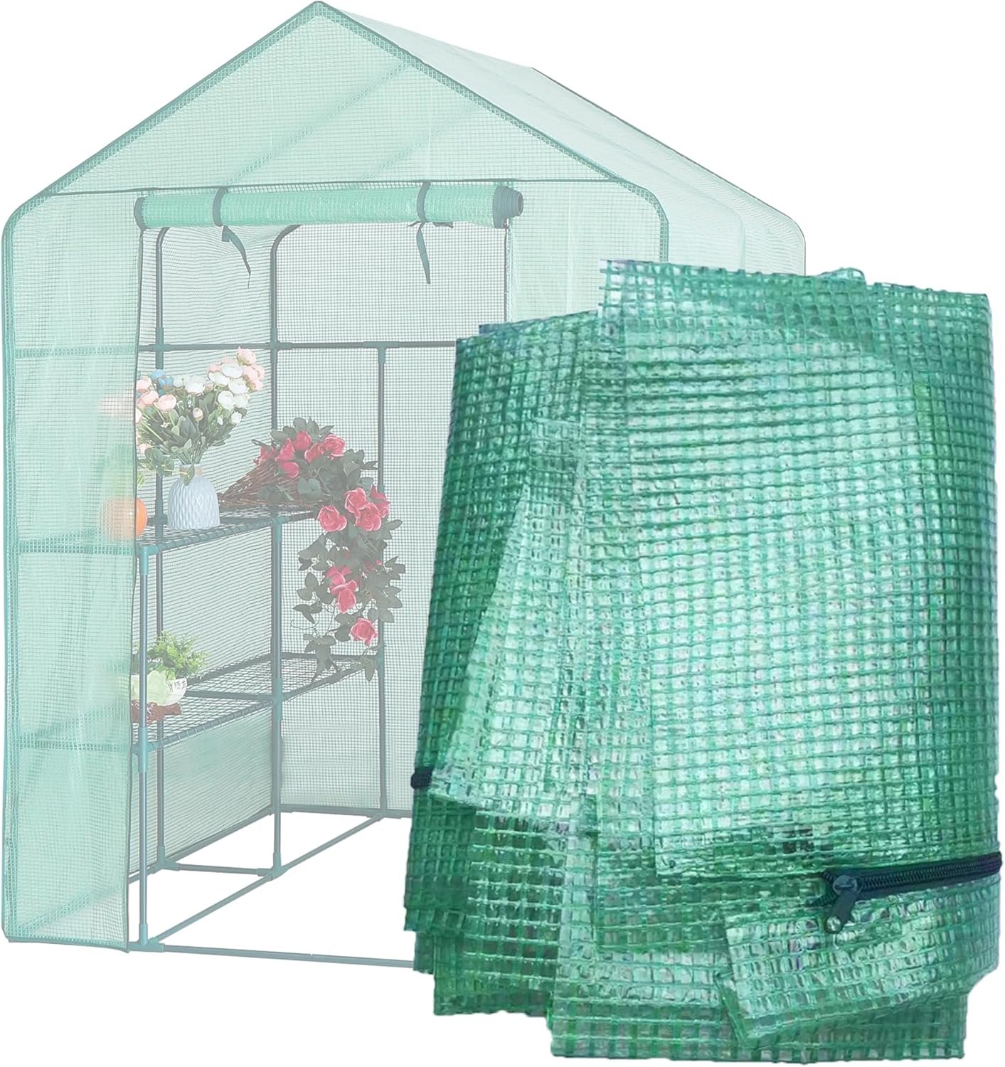 Greenhouse Replacement Cover, 56×56×76 Inch PE Walk-in Greenhouse Cover for Gardening Plants w/Roll-Up Zipper Door, Waterproof Frost Protection Wind Rain Proof, Easy Assembly (No Frames Include)