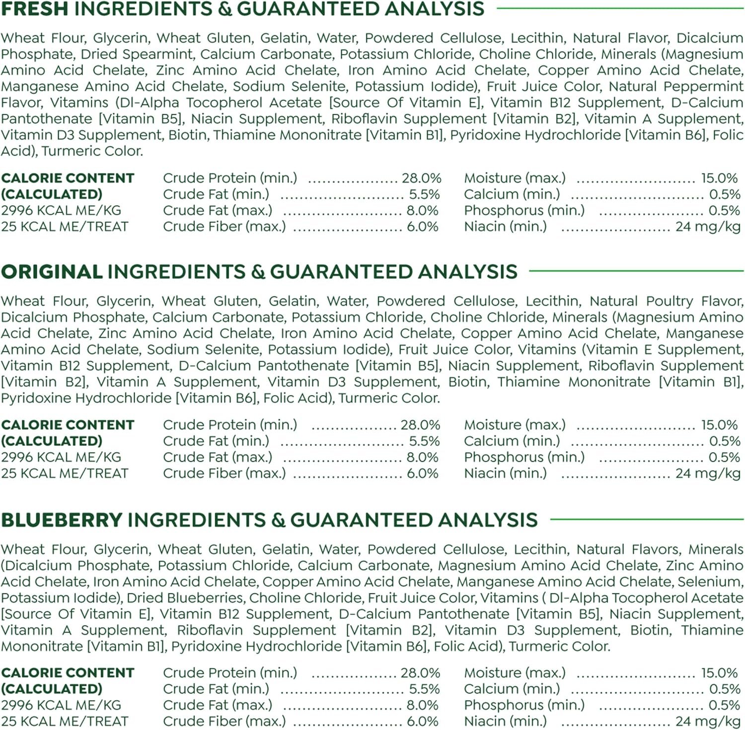 Just one Greenies dental treat a day is all it takes for clean teeth, fresh breath, and a happy dog. This variety pack of Greenies Natural Dental Care Dog Treats for small breeds and little dogs features a handful of delicious flavors including our Original flavor, minty Fresh flavor, and irresistible Blueberry flavor. With a unique, chewy texture, these oral care treats clean down to the gumline to help fight plaque and tartar and freshen your dog’s breath. Made with vitamins, minerals, and other nutrients, these natural dog treats contain highly soluble ingredients that are easy to digest making them safe as an everyday treat. Plus, these flavorful treats are accepted by the Veterinary Oral Health Council for at-home canine oral care. Treat your dog to fresh breath, clean teeth, and healthy gums with a daily Greenies dental chew.