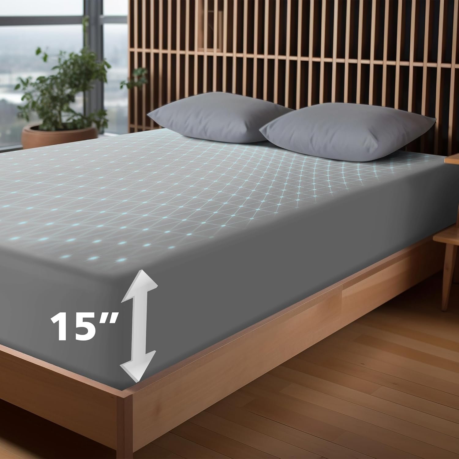 【Premium Material and Comfortable Design】 Crafted from a blend of 90% organic cotton and 10% silver fiber, these sheets offer exceptional softness, breathability, and comfort. The all-around premium elastic ensures a snug fit around the mattress, preventing slipping, sliding, bunching up, or popping off during the night, promoting a comfortable sleep environment.