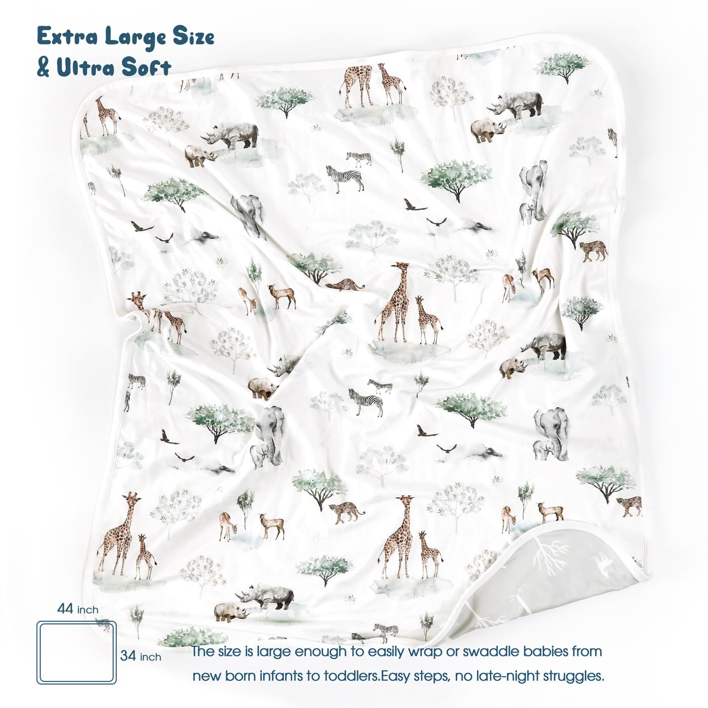 GRSSDER Baby Blankets Super Soft Stretchy Jersey Knit Swaddle Blanket for Baby Girls and Boys, Double Layer Reversible Receiving Blankets 34 x 44, Extra Large for Swaddling
