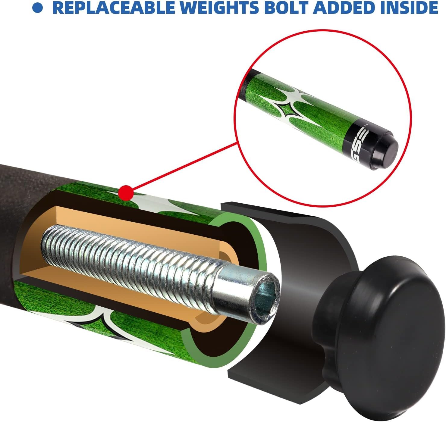 Premium Material: The pool cue shaft is made of A grade Canadian hardwood maple; the cue butt is made of Australian hardwood with a decal sleeve