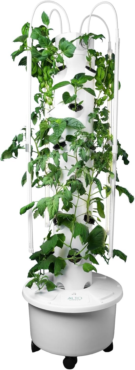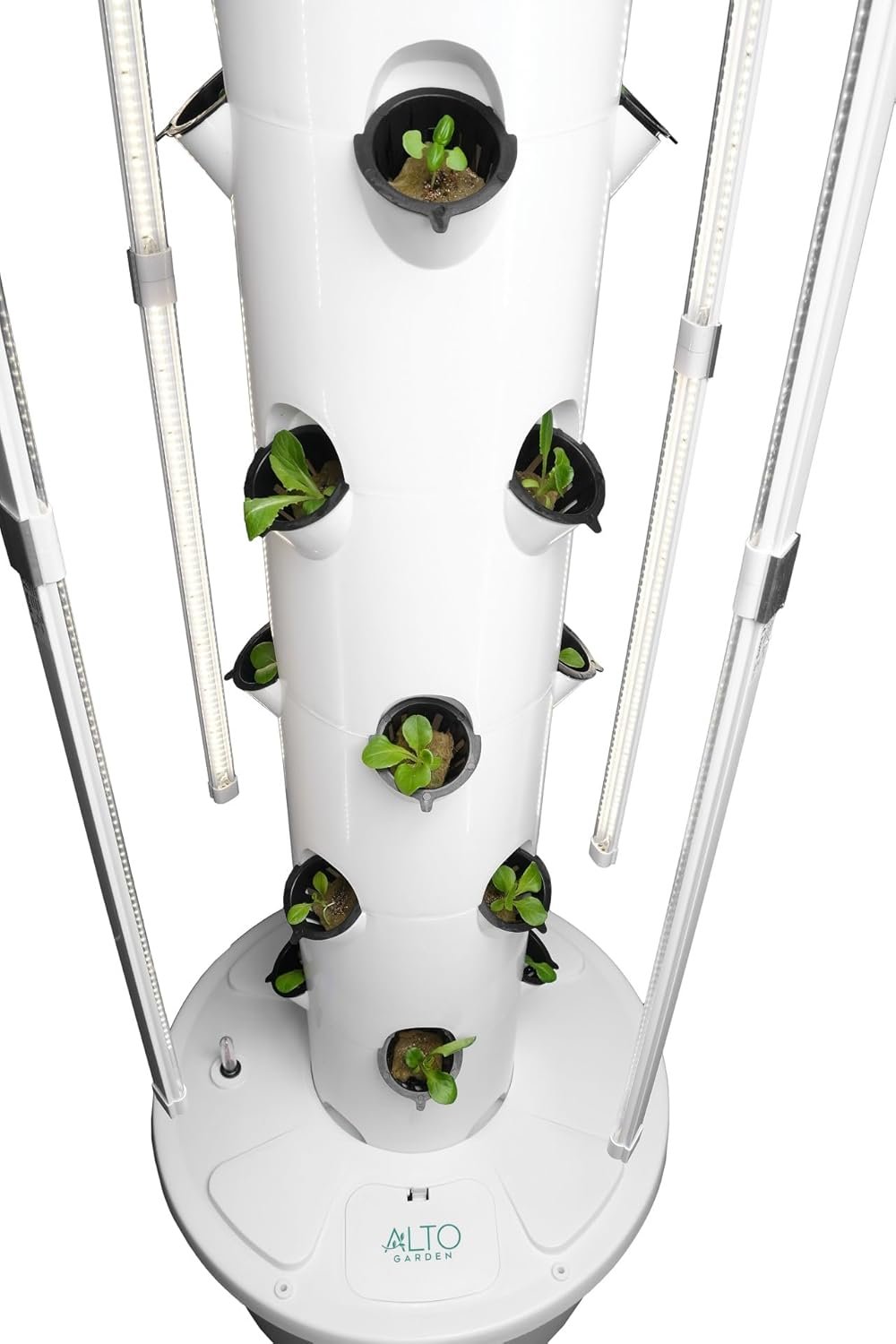 [ALTO GARDEN FEATURES] Fully contained, self-watering and self-lighting hydroponics growing system. Tower walls are an industry-leading 2mm thick. Each layer of the tower is a solid 360 degree construction all the way around. No leaky joints! Wide-spaced pot design gives plants room to fully grow without cramping.