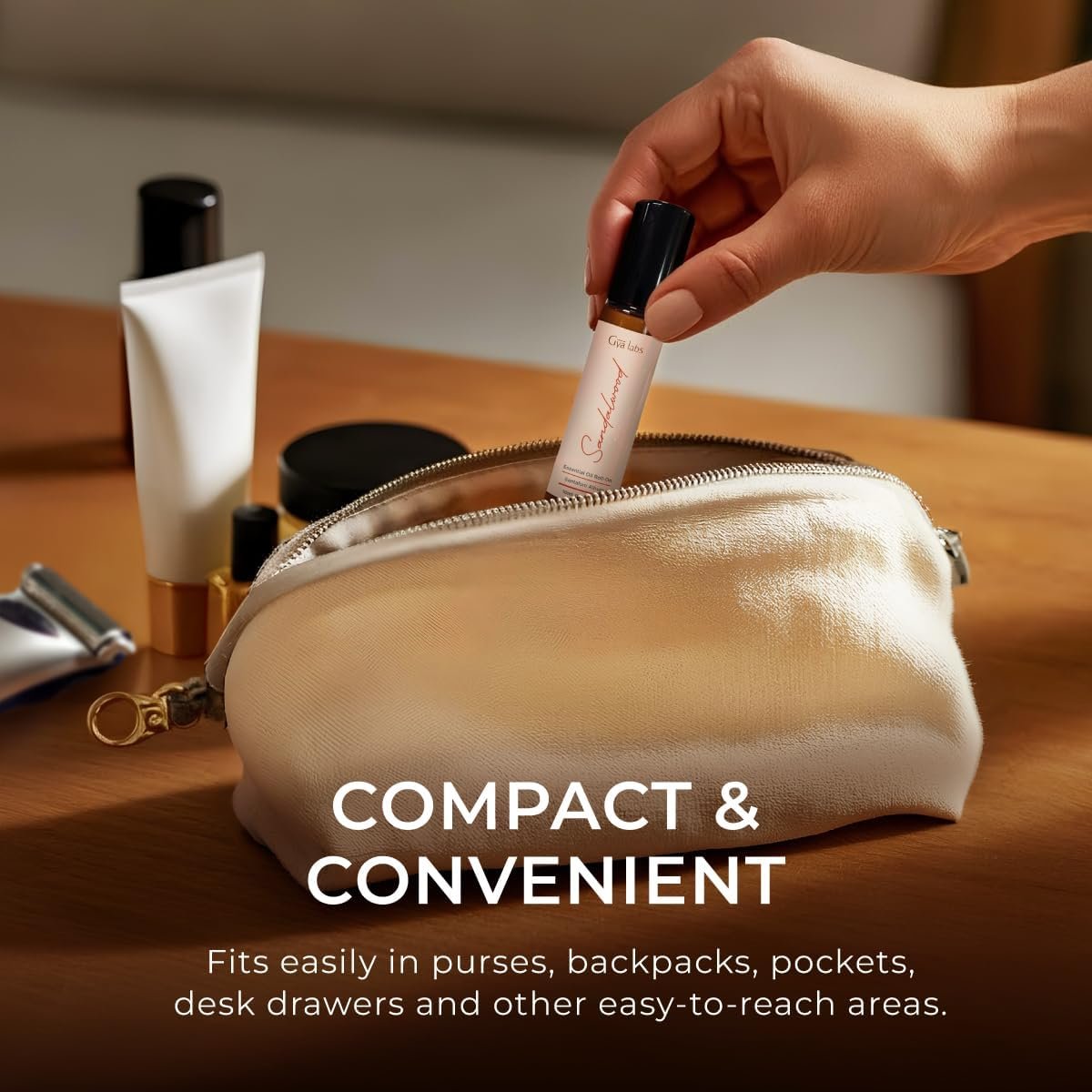 Designed for an on-the-go lifestyle, this compact sandalwood oil for skin roll-on fits seamlessly in your pocket, purse, or travel kit, ensuring your signature scent of sophisticated grounding is always within reach.