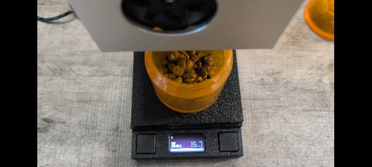 Jusqu’à présent, la production est de ± 0,3 g, ce qui est très similaire aux compteurs de grains Acaia beaucoup plus chers.