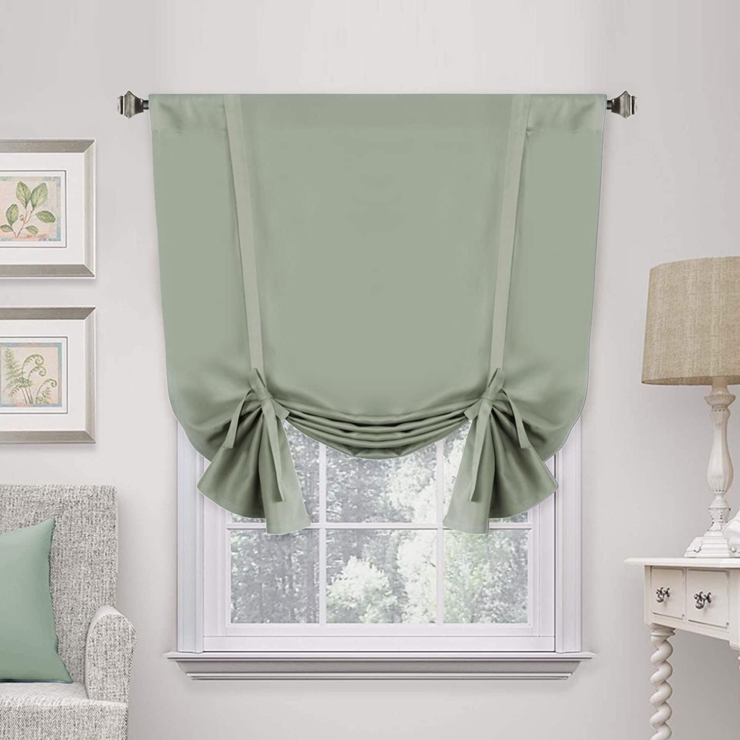 H.VERSAILTEX Solid Blackout Curtain Energy Efficient Tie Up Shades Rod Pocket Panel for Kitchen (Light Sage, 42W x 63L, One Panel)
