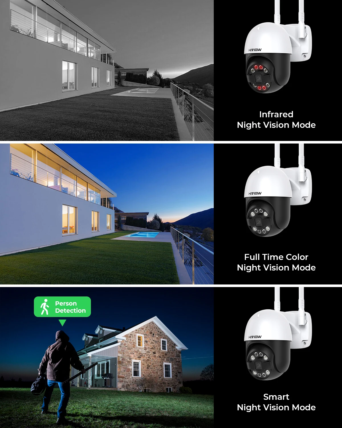 Night vision has been greatly improved with eight powerful spotlights and infrared LEDs. You can view clear details in full color and get your home well protected day and night.