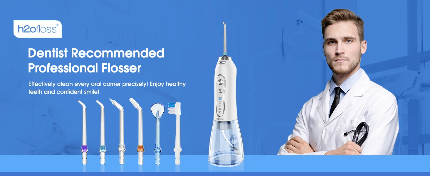 h2ofloss Oral Irrigator Dental Water Jet Mouth Washing Machine Water Flosser Water Pick Rechargeable Portable for Home /Travel