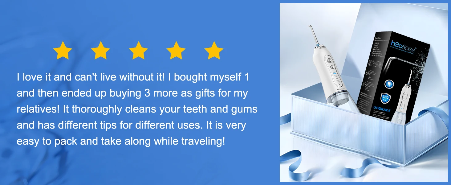H2ofloss brand makes a considerate gift for birthdays, Christmas, Thanksgiving, Valentine’s Day, Father’s Day, or Mother’s Day, showing your care for your loved ones’ oral health. 12 months after-sale service and 24Hrs response E-mail support for troubleshooting to ensure user satisfaction.